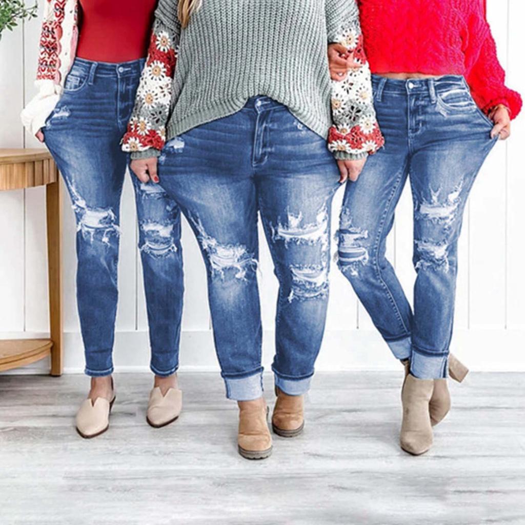 Джинсовые брюки для женщин, женские потертые рваные повседневные уличные джинсы в стиле хип-хоп со средней посадкой и прямыми штанинами