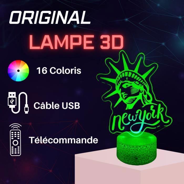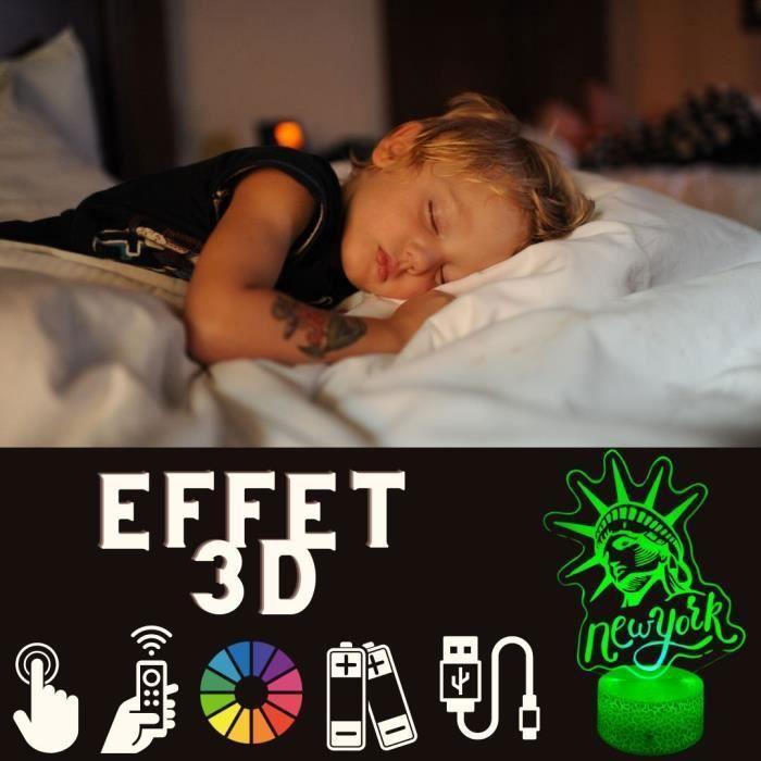 Lampe de chevet 3D Décoration New York ,Veilleuse Changement de couleurs, Lampe Tactile Bureau et Chambre Ado enfant, Eclairage