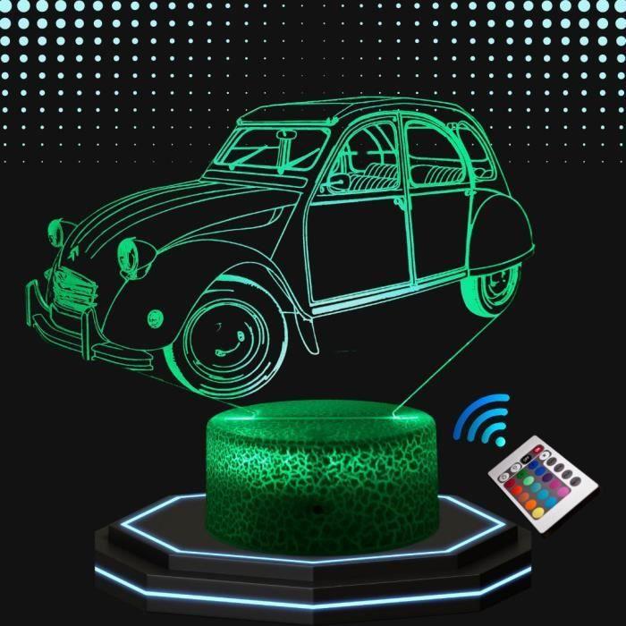 Lampe chevet 3D LED voiture de collection 2CV deux chevaux, Veilleuse changement de couleurs, Lampe tactile bureau chambre vintage
