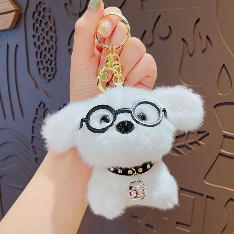Мультяшный Милый Плюшевый Брелок для Ключей в виде Щенка в Очках, Мягкая Набивная Собачка, Подвеска для Сумки, Украшения, Брелок для Ключей от Машины для Женщин, Девочек-Подростков, Подарок на Вечеринку