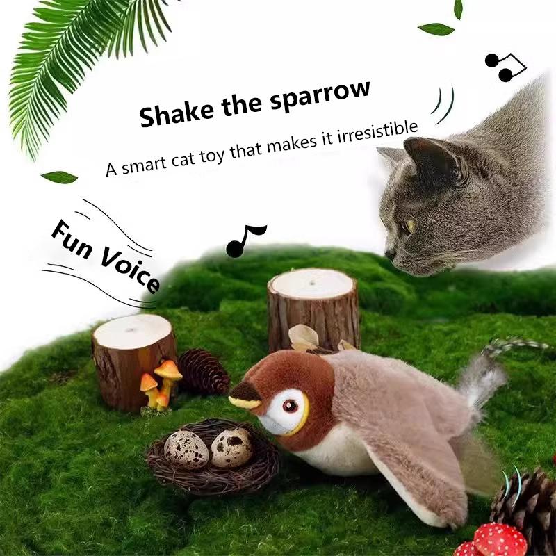 Электрическая плюшевая игрушка для питомца, хлопающая и трясущаяся воробей, заряжающая кошачья игрушка, имитация качающейся птицы