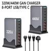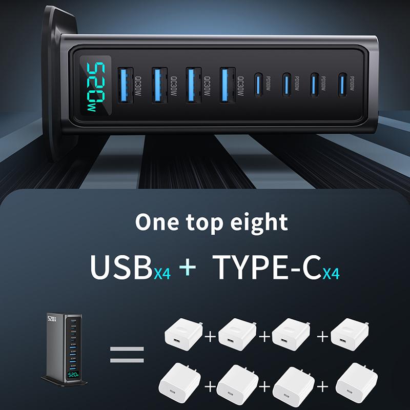 520 Вт 8-портовое настольное зарядное устройство для телефона, ноутбука, планшета со светодиодным дисплеем мощности, адаптер питания для быстрой зарядки PD для компьютера, ПК, для iPhone