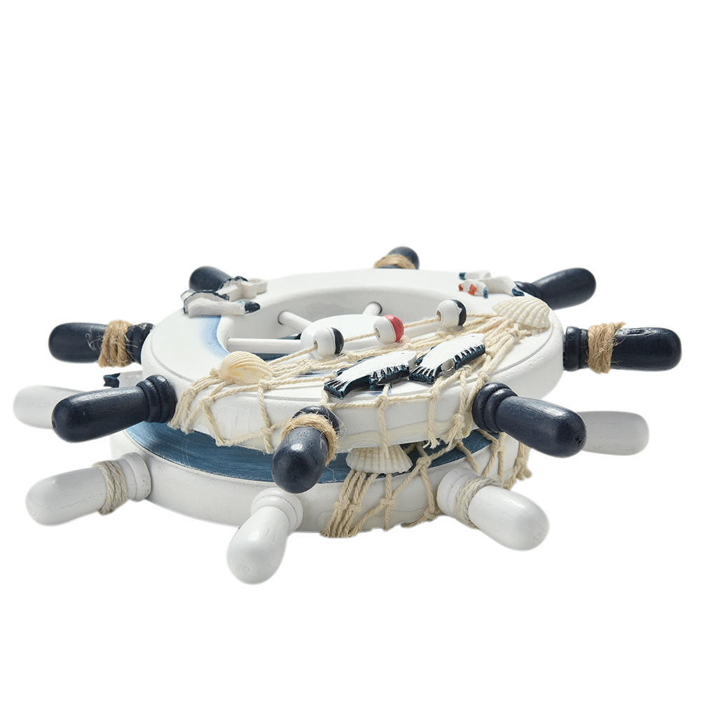 Руль сочетается с рыболовными сетями, веслами, якорями, плавательными кругами, он лучше всего подходит для создания пространства морской тематики.