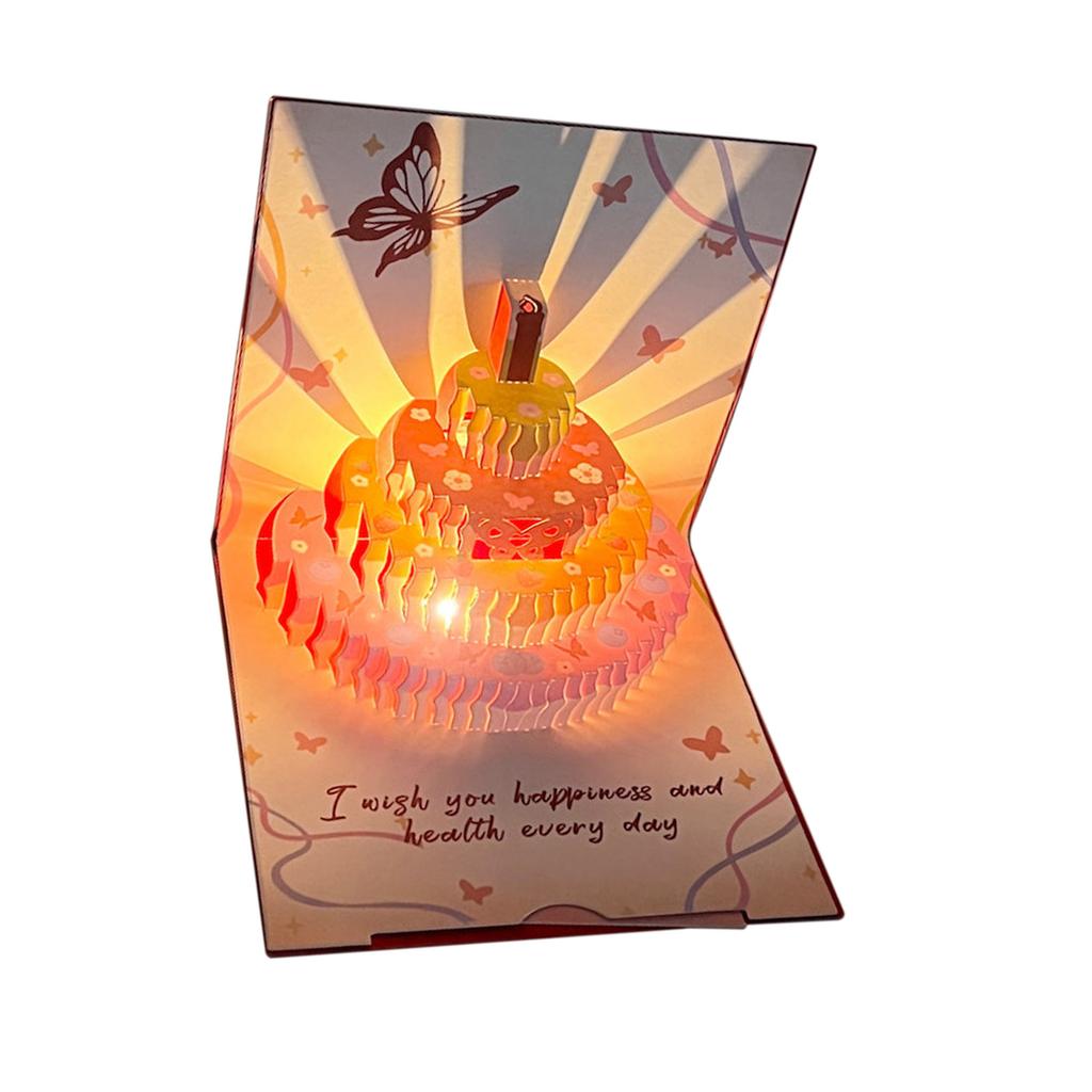 Почувствуйте волшебство дня рождения с нашей 3D-поздравительной открыткой со светом и музыкой, которая представляет собой привлекающий внимание дизайн выдвижного торта, сочетающего в себе музыку и свет.