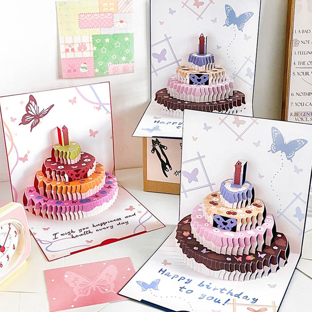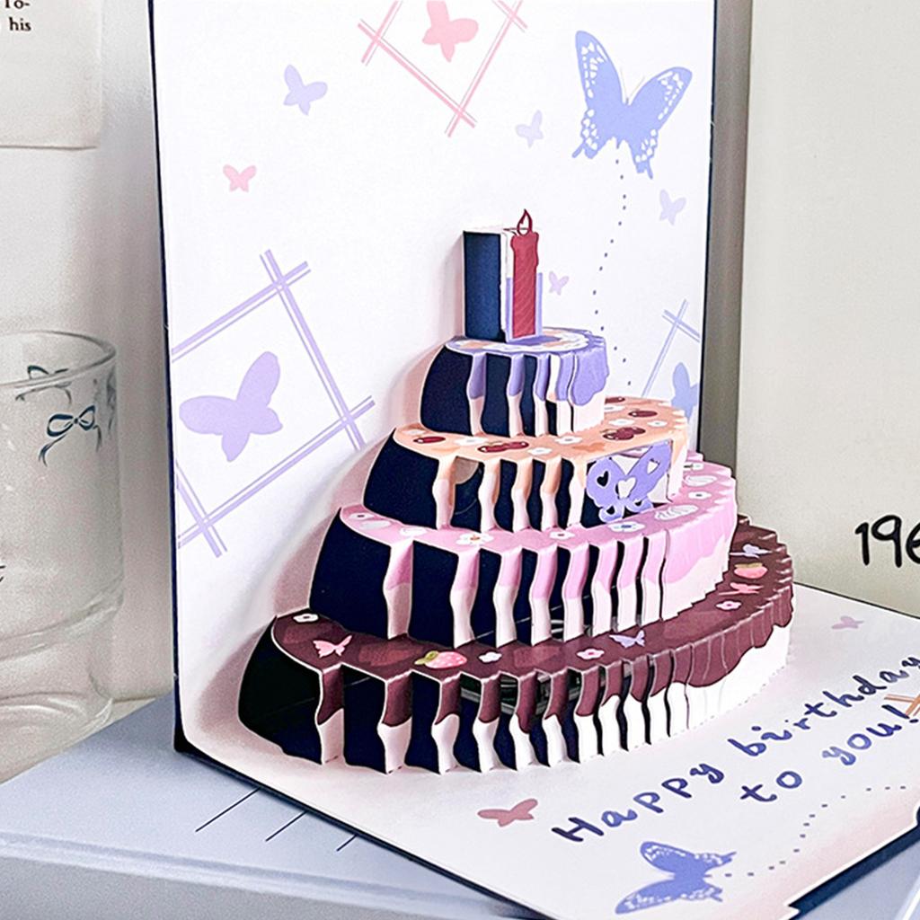 Эта открытка отлично подойдет детям и подросткам, она понравится зрителям благодаря мультяшному рисунку бабочек и 3D-изображению торта, что делает ее идеальным средством для выражения любви и благословения.