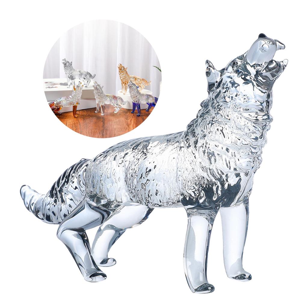 Статуэтка волка из хрустального стекла, воющая статуэтка волка, ручная стеклянная скульптура животного, коллекционное пресс-папье