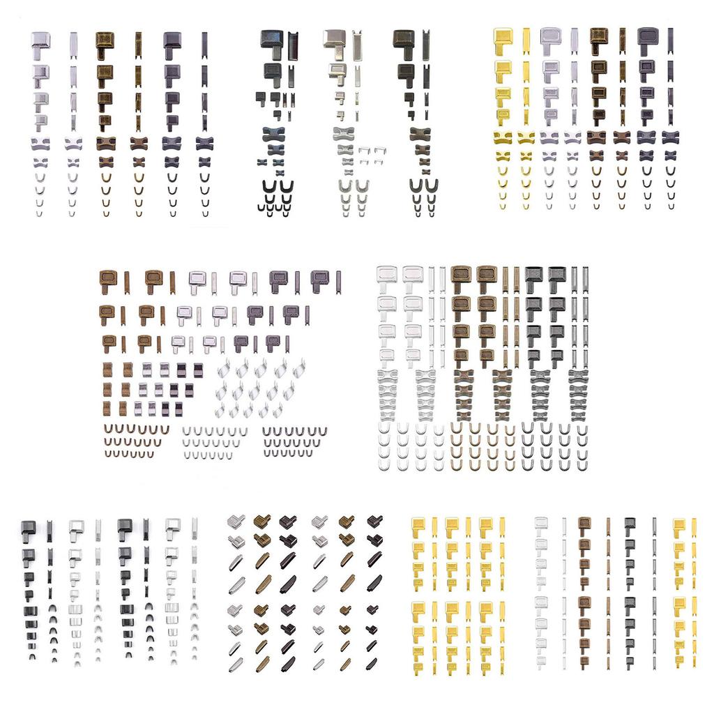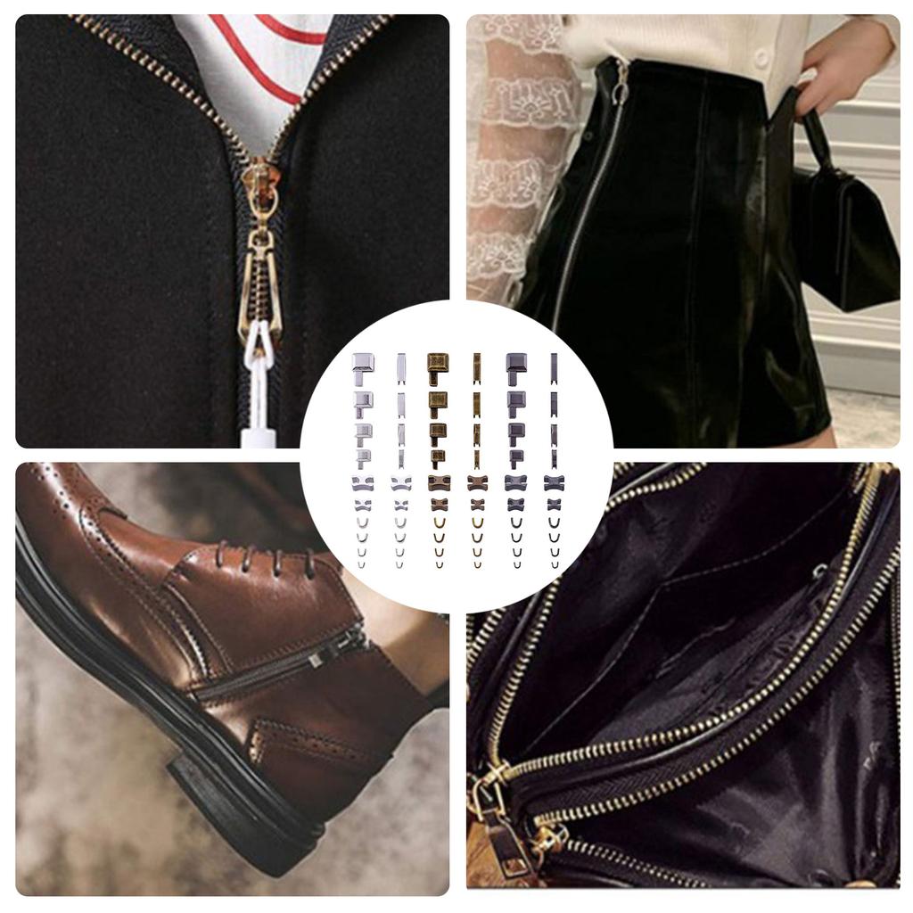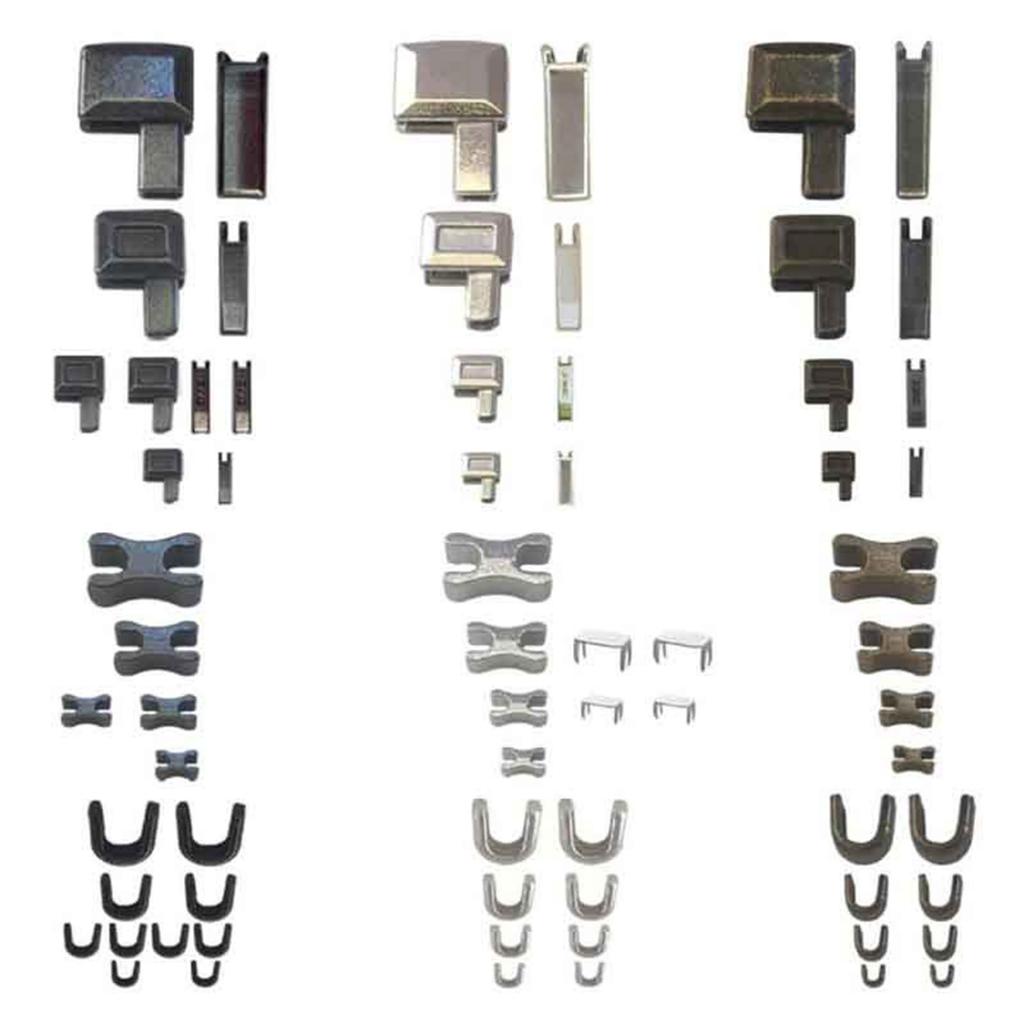 Изготовленные из металла, эти аксессуары для ремонта и замены застежек-молний доступны в различных размерах и цветах, включая золотой, серебряный, бронзовый и серебристо-черный, и подходят для большинства типов молний.