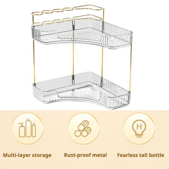 Универсальный дизайн: Увеличьте свое пространство с помощью этой стильной полки для хранения вещей.. Он оснащен специальным отделением для ароматизаторов и удобным держателем для кистей для макияжа, что придает элегантность вашей ванной комнате, туалетному столику или кухне.