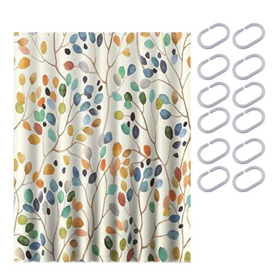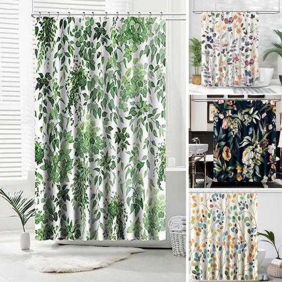 Занавеска для душа с 12 крючками, растительный принт, ретро-пасторальный стиль, естественная красота