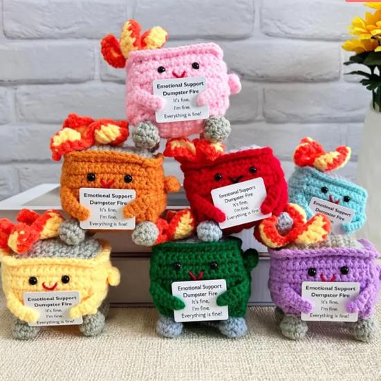 Дизайн эмоциональной поддержки: Украсьте свое пространство с помощью нашего связанного крючком мусорного контейнера с очаровательным дизайном в виде пылающего мусорного контейнера, который добавит нотку причудливости любой обстановке.