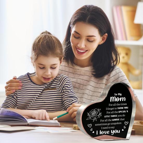 Украсьте свой дом этим изысканным украшением из акриловых блоков.. Изготовленное из высококачественного акрила, это украшение отличается прозрачностью, подобной стеклу, и прочной конструкцией, что обеспечивает устойчивость к случайным ударам.. Дизайн в форме сердца добавит элегантности любому помещению, что делает его идеальным подарком для вашей любимой мамы, папы, жены или мужа.. Эта настольная декоративная табличка размером примерно 10 x 10 x 1 см легкая, но прочная, с четкими и яркими узорами, которые не выцветают со временем.. Его гладкая поверхность обеспечивает ощущение комфорта, что делает его идеальным для различных помещений, таких как журнальные столики, прикроватные тумбочки, офисные столы и многое другое.