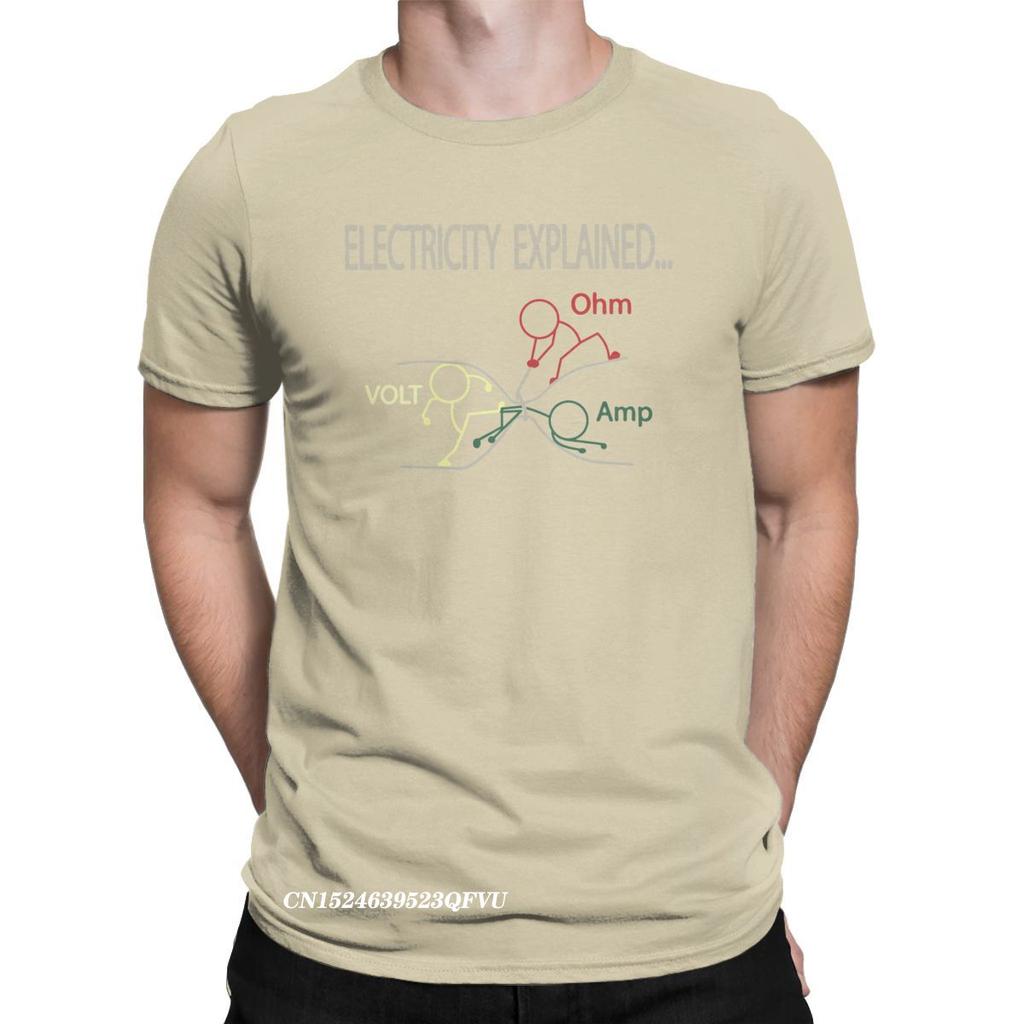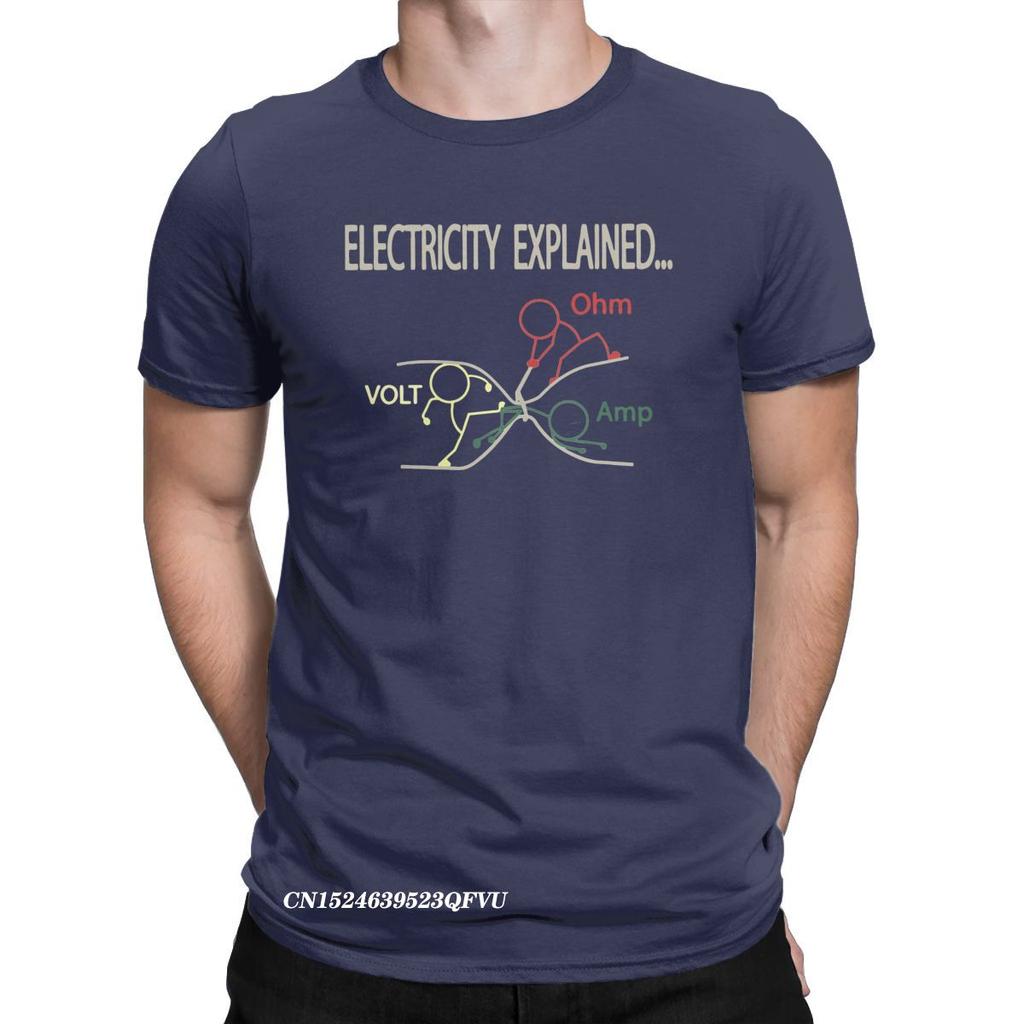 Забавное объяснение электричества Электрик Ом Ампер Вольт Мужские топы Футболки Закон Ома Винтажные футболки Хлопок Новое поступление Топы