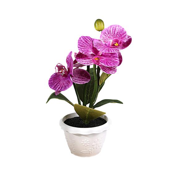 Наше искусственное растение в горшке, изготовленное из высококачественной искусственной шелковой ткани и пластика, имеет мягкую и влажную текстуру, что делает его невероятно реалистичным.. Цвета яркие и реалистичные, добавляя нотку красоты в любое пространство.. Будь то ваш дом, офис, гостиница или даже специальное мероприятие, такое как свадьба или вечеринка, этот бонсай из искусственной орхидеи станет идеальным украшением.