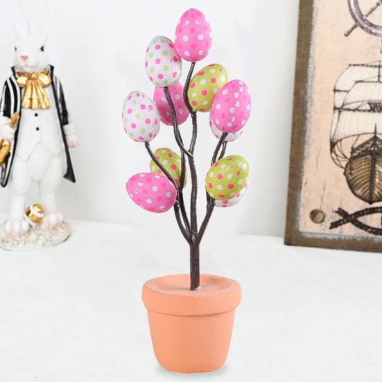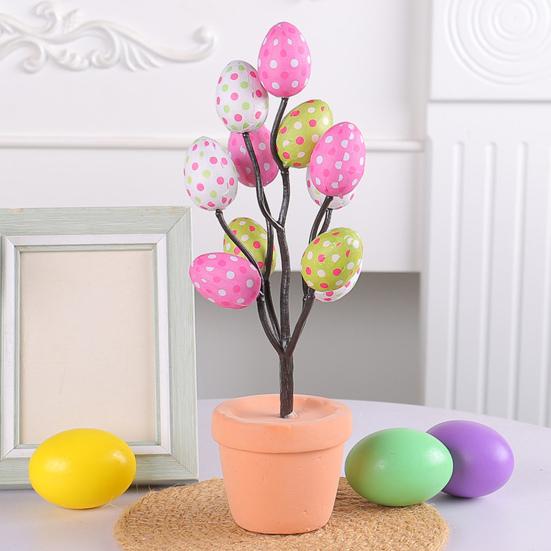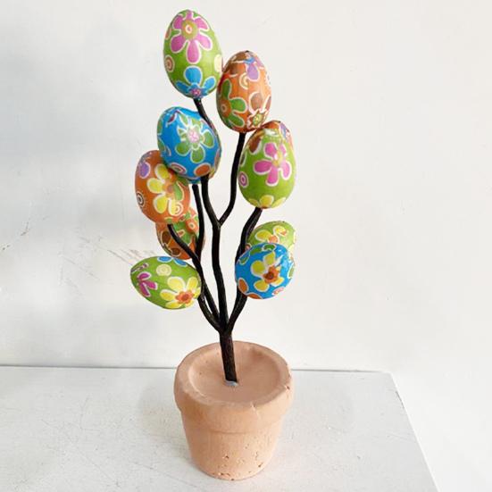 Привлекательная атмосфера: Имитированная форма растения в горшке с пасхальным яйцом создает привлекательную атмосферу, идеально подходящую для пасхальных украшений.