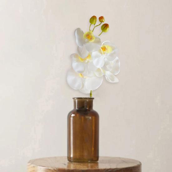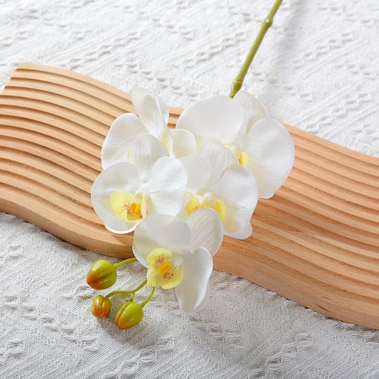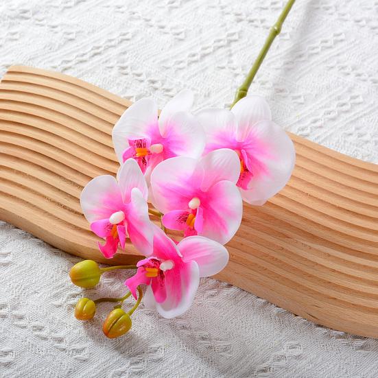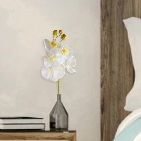 Многофункциональное оформление: Эти искусственные цветы в виде ветки фаленопсиса с пятью головками универсальны как для внутреннего, так и для наружного декора.. Независимо от того, украшаете ли вы внутренние помещения, садовые пейзажи, свадьбы, мероприятия или фотосессии, они легко создают естественную атмосферу в различных средах.