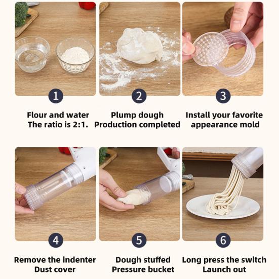 Дайте волю своему кулинарному творчеству с помощью этой портативной машины для приготовления пасты, работающей по беспроводному соединению. Просто выберите предпочтительную форму для лапши, вставьте тесто и нажмите кнопку, чтобы легко и без труда приготовить вкуснейшую лапшу, не прибегая к сложному ручному труду.