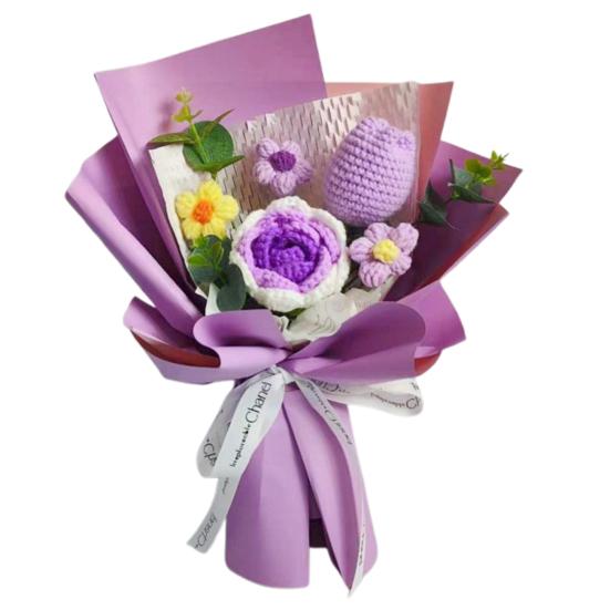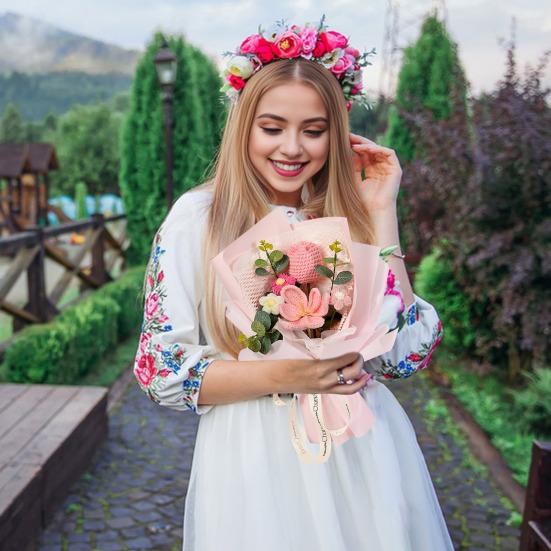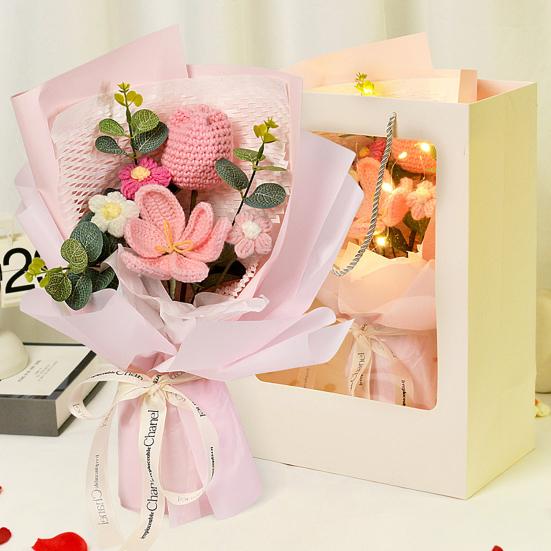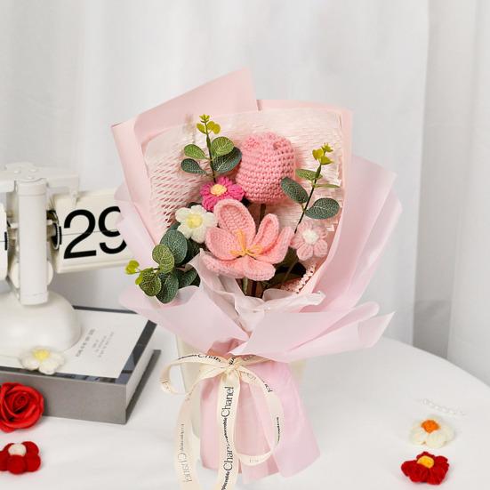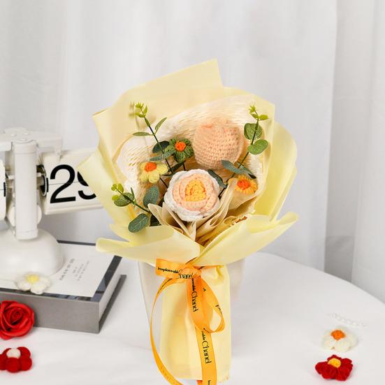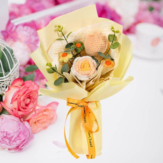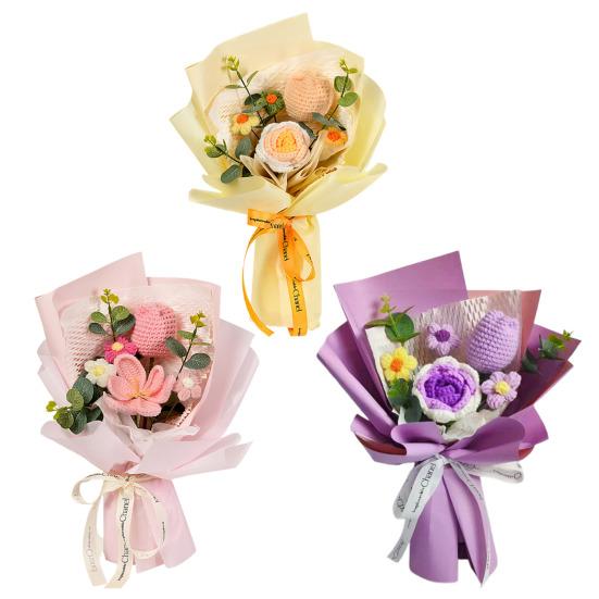 Готовый плетеный букет состоит из искусственных цветов, которые яркие, элегантные и долговечные.. Они придают свежий и естественный вид, выступая в качестве экономически выгодной альтернативы живым цветам.. Эти букеты, изготовленные из высококачественной пряжи, безопасны, долговечны и идеально подходят для людей, страдающих аллергией на цветы.