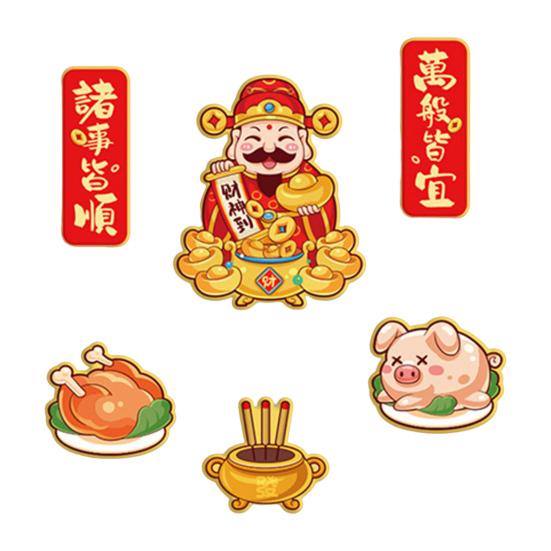 Праздничные новогодние узоры: Украсьте свое пространство набором из 6 ярких магнитов на холодильник с благоприятным новогодним дизайном, которые передают добрые пожелания в наступающем году и добавляют нотку культурного очарования в ваш интерьер.