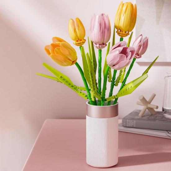 Цветочный конструктор Tulip Brick — это потрясающее произведение искусства, изготовленное из реалистичного пластика, предлагающее долговечную и красивую альтернативу настоящим цветам.. Его регулируемые лепестки и стебли позволяют создавать индивидуальные цветочные композиции, что делает его универсальным декоративным элементом для любого пространства..
