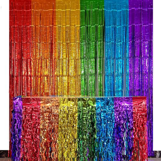 Яркая тема мексиканской фиесты: Украсьте свою вечеринку этой красочной мексиканской юбкой из фольги для стола. Волнистые кисточки из металлической фольги красного, зеленого, желтого, синего, фиолетового и оранжевого цветов создают праздничную атмосферу.