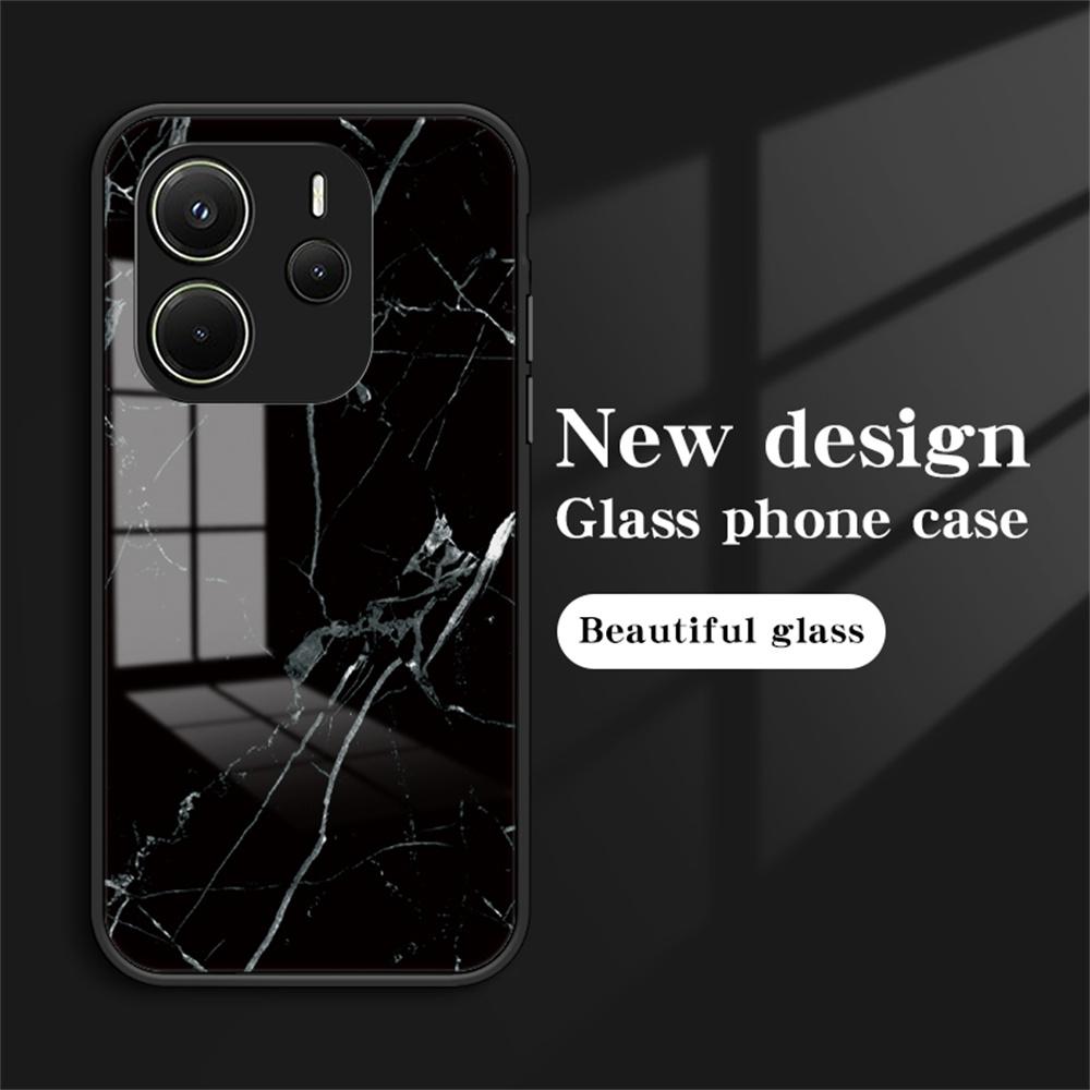 Для Xiaomi Redmi Note 14 4G (163,25 мм) Чехол Мраморный узор Закаленное стекло+ПК+ТПУ Защитная накладка для телефона