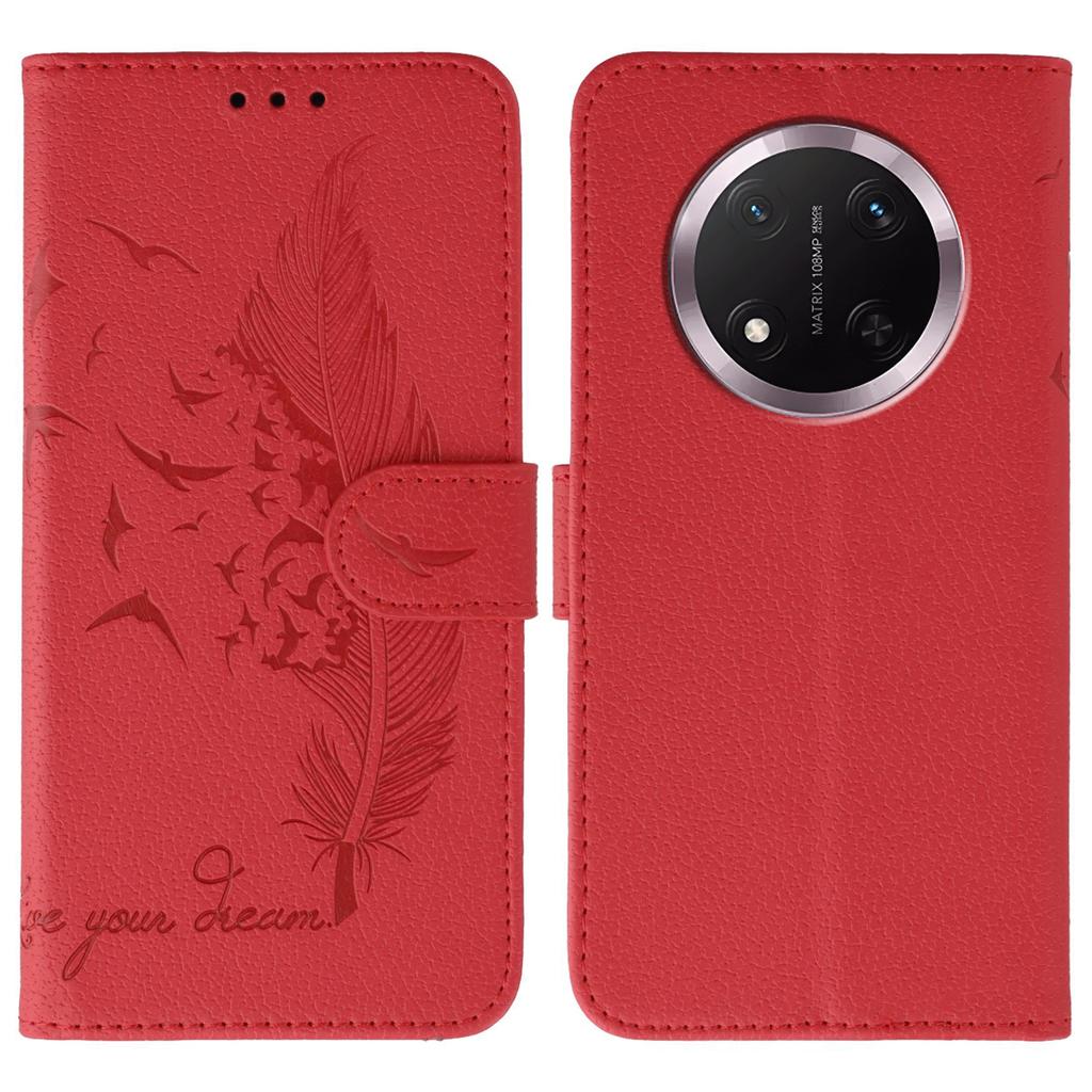 Чехол для телефона для Honor Magic7 Lite 5G/X60 Pro 5G/X9c 5G с тиснением пера, кошелек-обложка из ПУ кожи