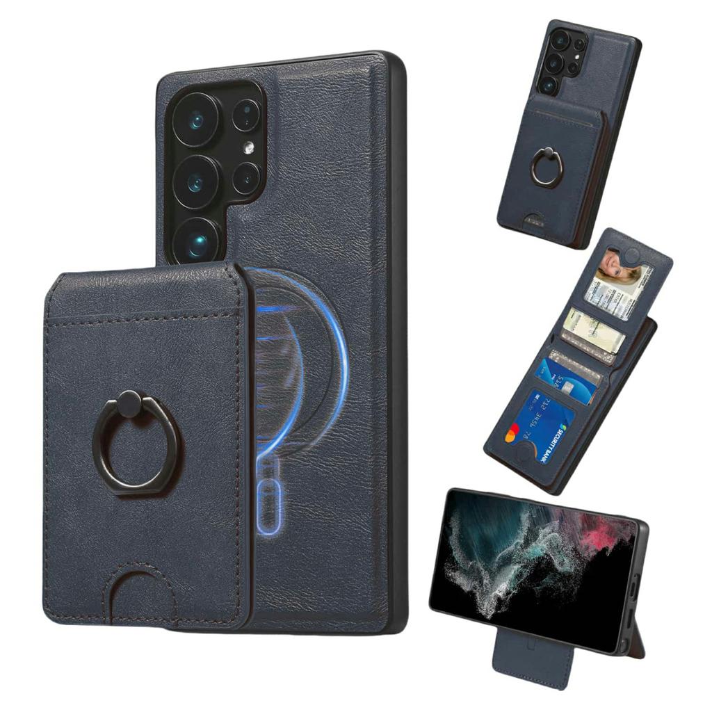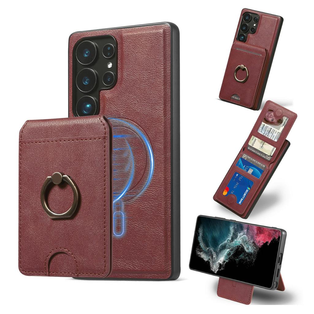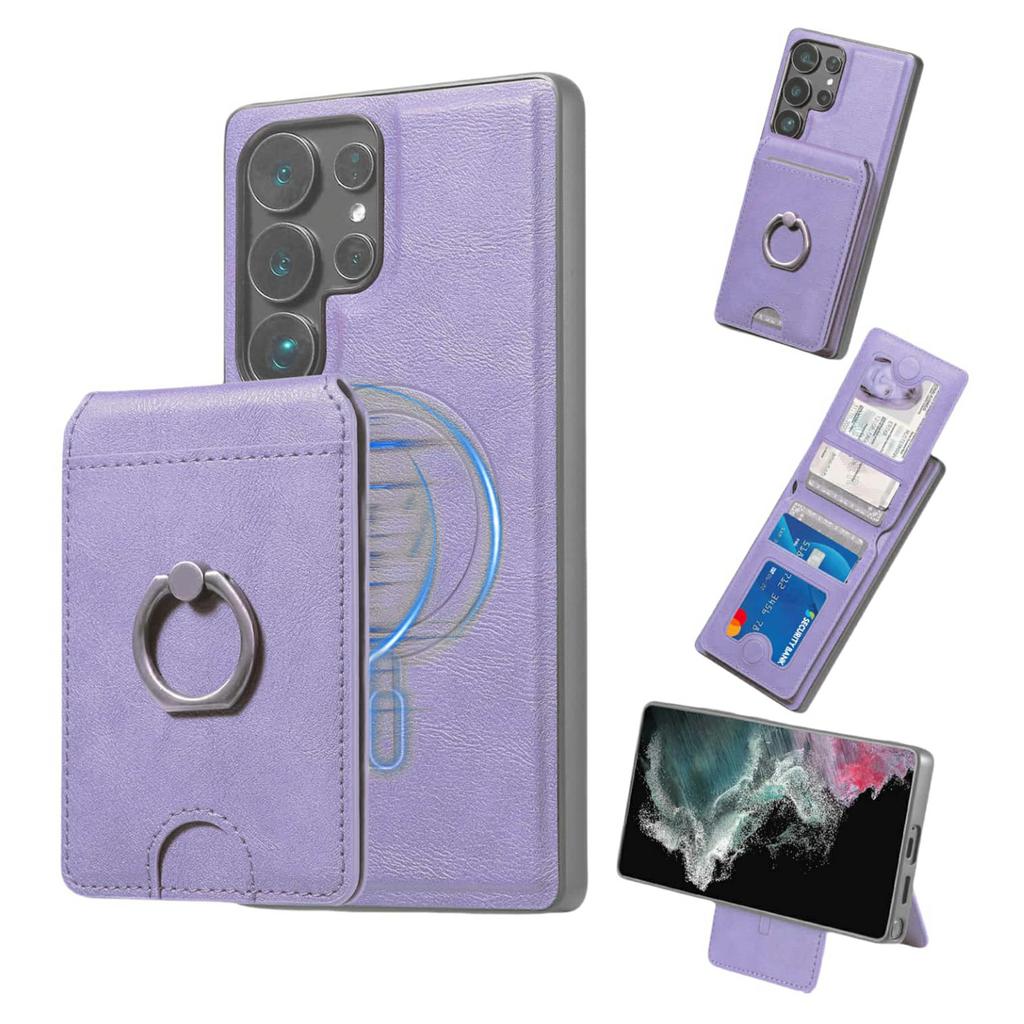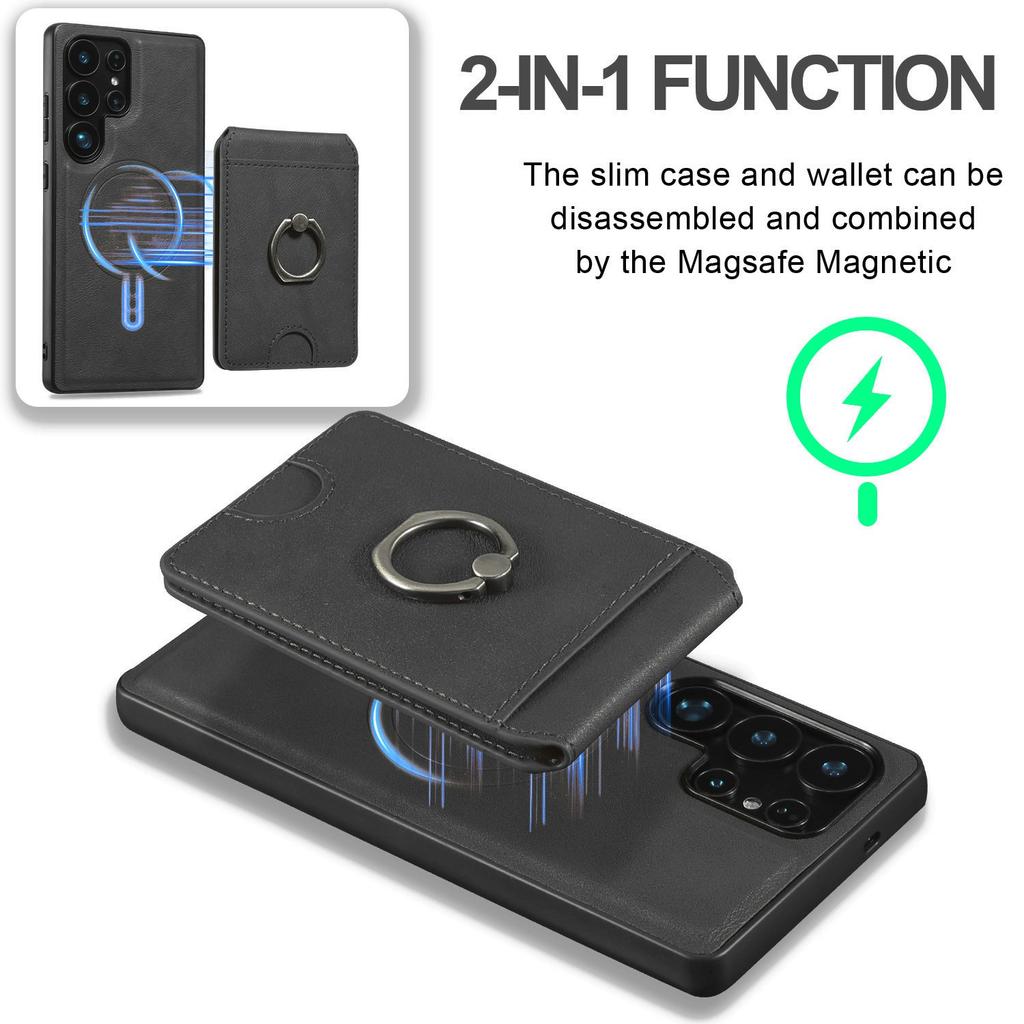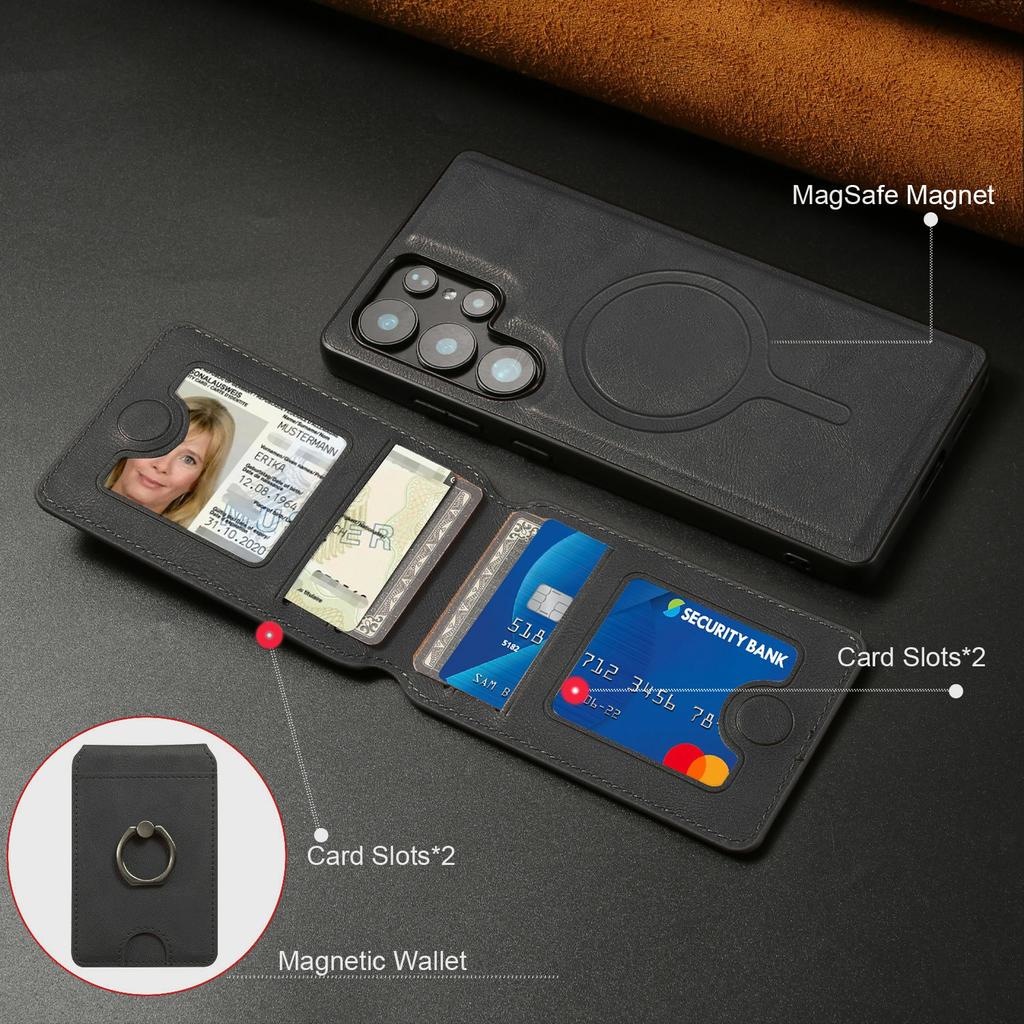 Магнитный чехол для Samsung Galaxy S25 Ultra PC+PU Задняя крышка для телефона со съемным держателем для карт