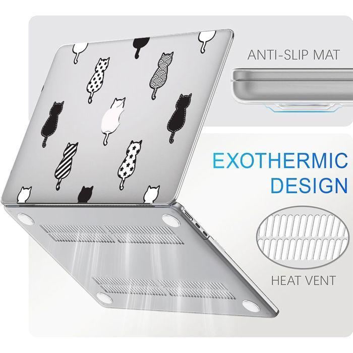 Coque pour MacBook Air 15 Pouces M4 M3 M2 2025 2024 2023, Protection Rigide Antidérapante Motif de Chat de Dos