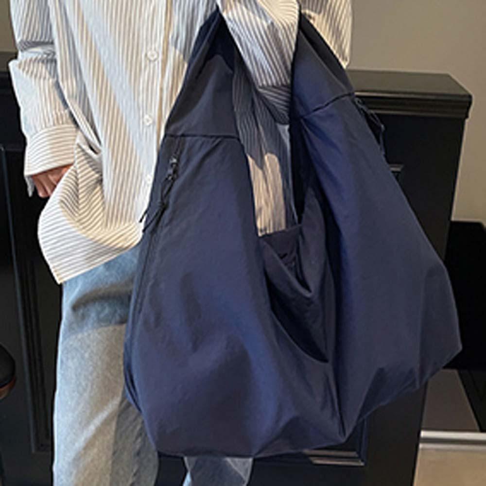 Double Zipper Design Nylon Shoulder Bag Casual Versatile Commuting Handbag Storage Pouch Women