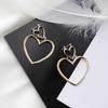 1 пара женских золотых серег-обруч с двойным сердцем, висячие полые серьги-гвоздики