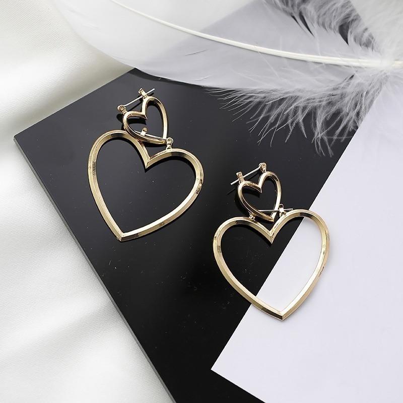 1 пара женских золотых серег-обруч с двойным сердцем, висячие полые серьги-гвоздики — купить товар онлайн с бесплатной доставкой по всему миру!