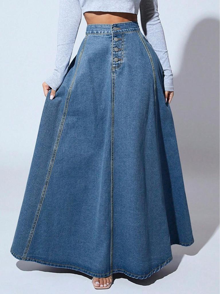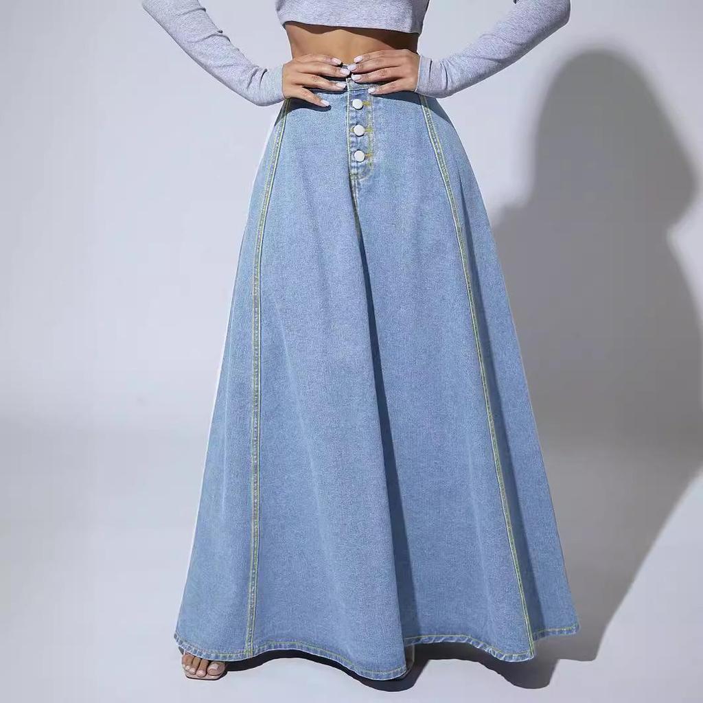 Откройте для себя непреходящую элегантность с этой юбкой А-силуэта в стиле ретро, выполненной из высококачественного денима.. Эта юбка с однотонным узором и классическим однобортным дизайном гармонично сочетает в себе европейский и американский винтажный стили.. Его непринужденный шарм делает его универсальным дополнением к любому гардеробу, идеально подходящим как для дневных, так и для вечерних образов.