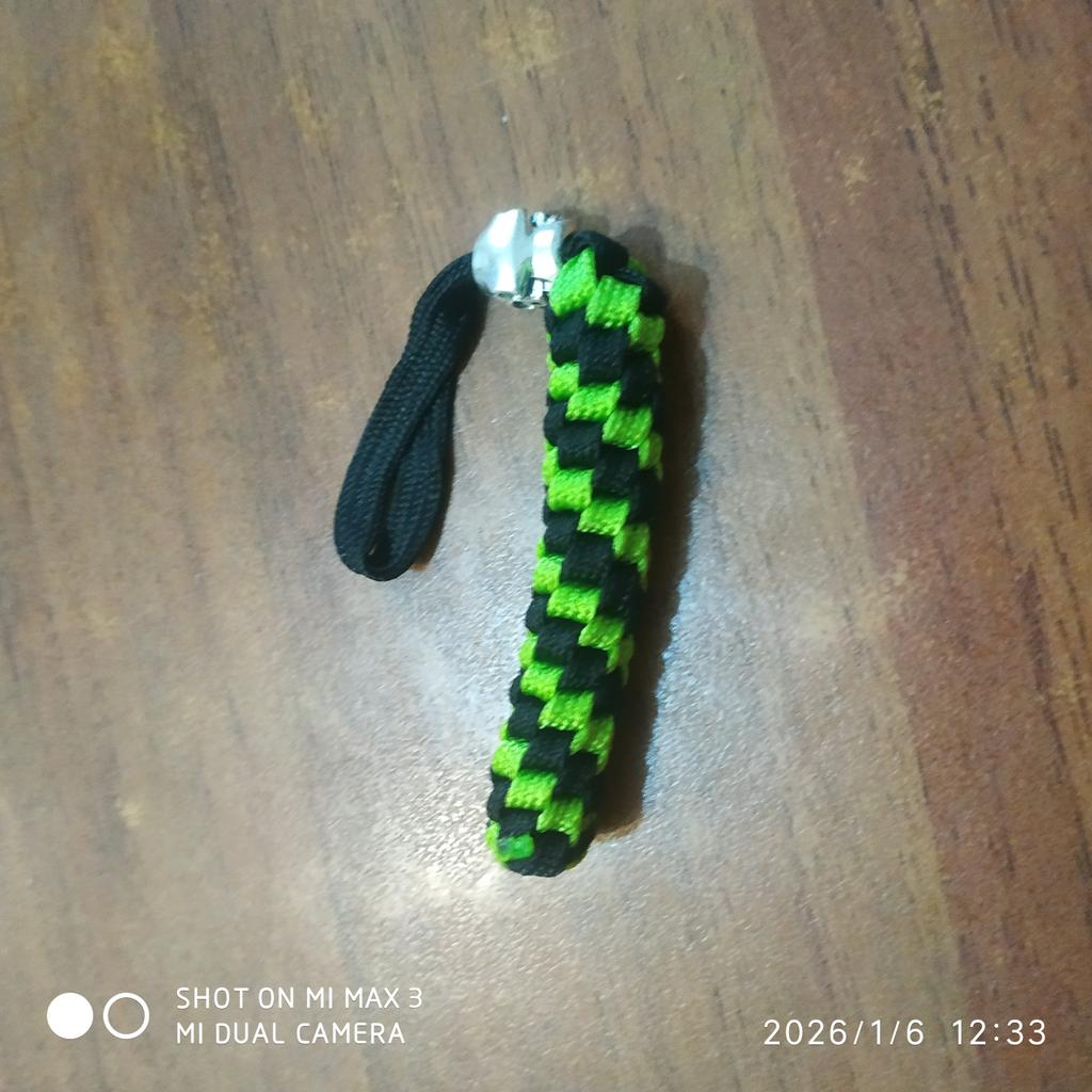 Доставка посылки 25 дней, в посылке три заказа. Брелок для ключей из плетёной разноцветной верёвки (цвет случайный); попал чёрно-зелёный; соответствует описанию и картинке продавца. Спасибо большое продавцу и Joom за доставку.
