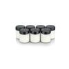 Размер и содержимое упаковки: Высота Прибл.: 3.8cm; Диаметр: 8.3cm; Вместимость: 150мл. Набор из 6 черных алюминиевых банок для крема, косметические контейнеры для повторного использования. 6 бесплатных шпателей и этикеток + 3 бесплатных мешочка из органзы.