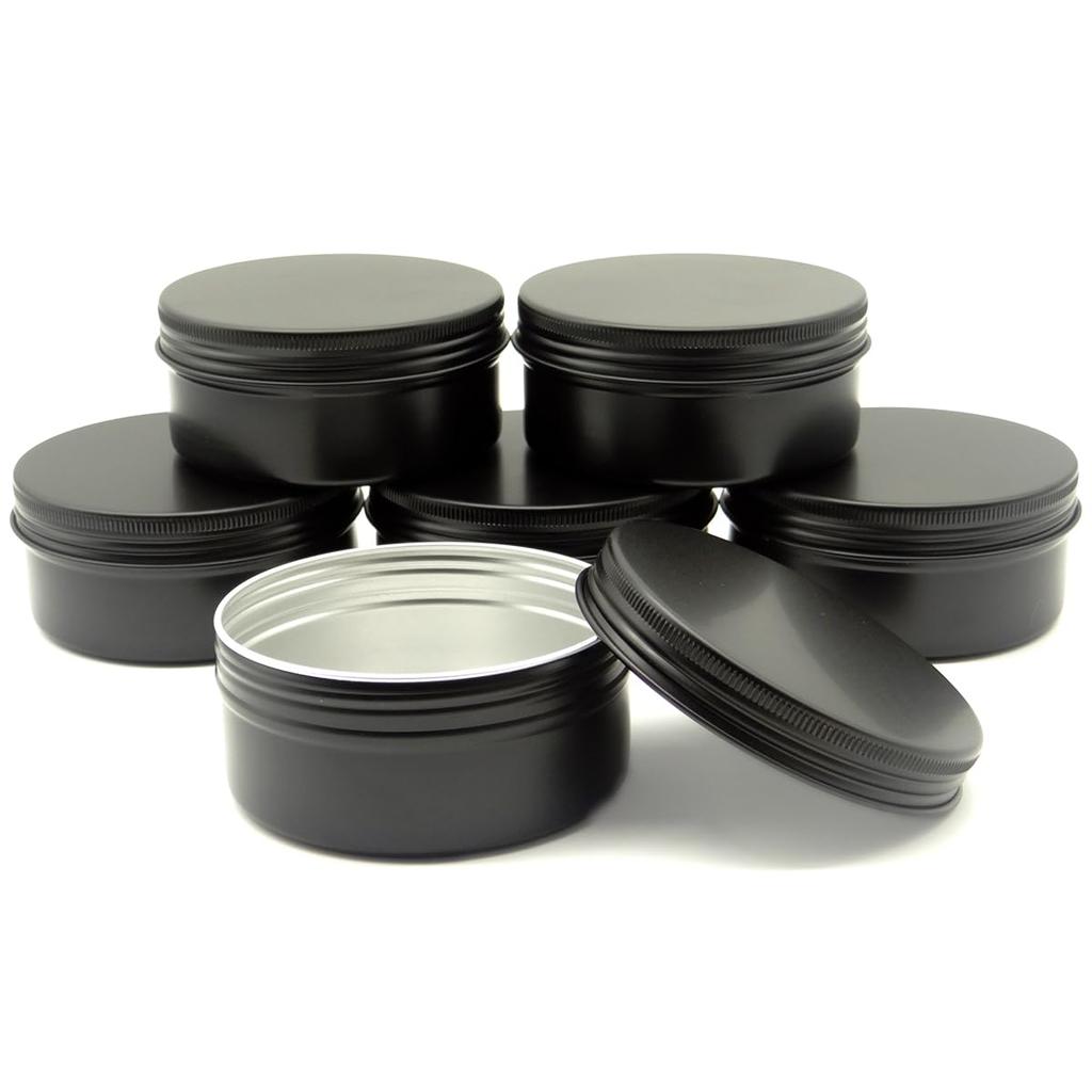 Упаковка Wopanxye, 6 черных алюминиевых банок по 150 мл, косметические многоразовые контейнеры для крема с завинчивающимися крышками и герметичными поролоновыми прокладками внутри.
