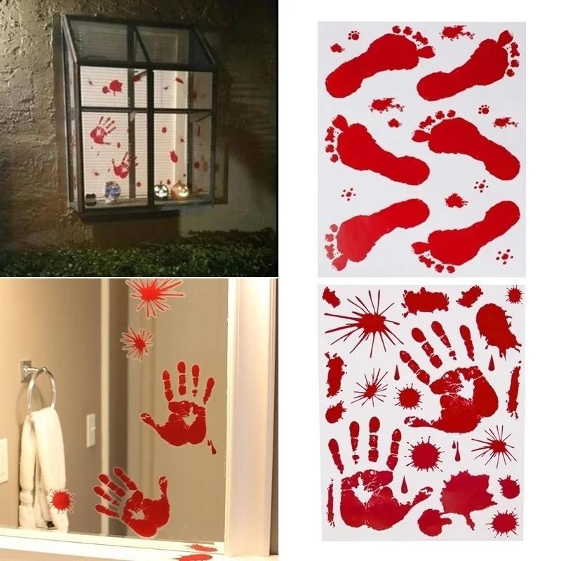 Хэллоуин ужасная кровь руки ноги оконное стекло наклейка гостиная спальня настенная наклейка Хэллоуин костюм сувениры для вечеринки
