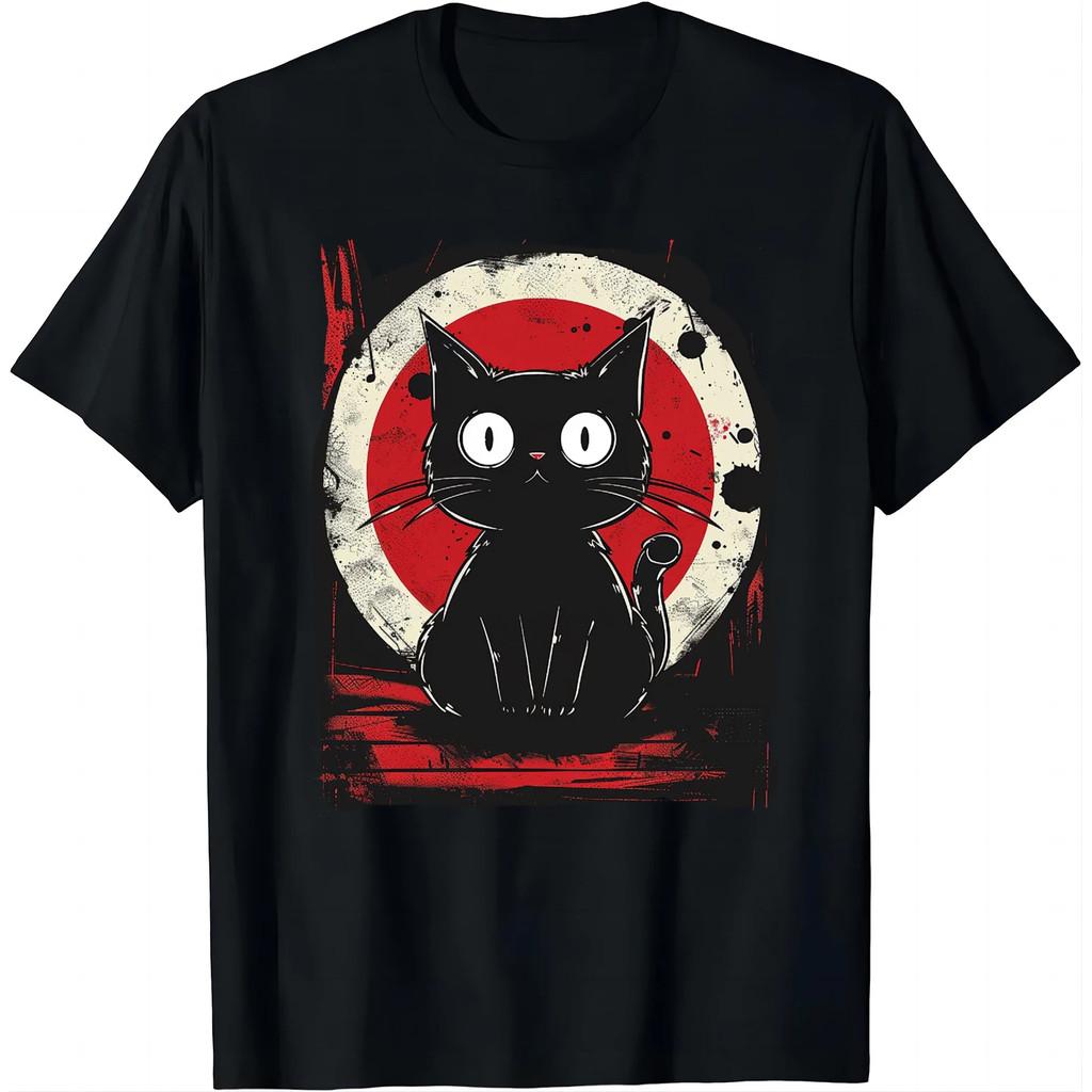Каваи Кошка Японская Черная Аниме Кошка Футболка Футболка Каваи Одежда Рубашки для Женщин Топы Графические Футболки Camisetas 70282