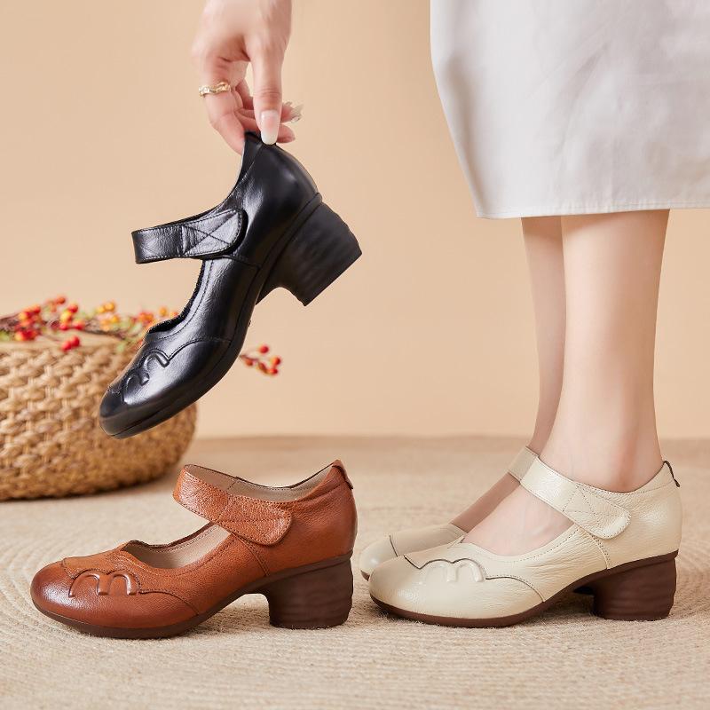 1930-е годы антикварные женские туфли на низком каблуке женские туфли Мэри Джейн однотонные туфли с круглым носком в стиле ретро женские туфли из натуральной кожи