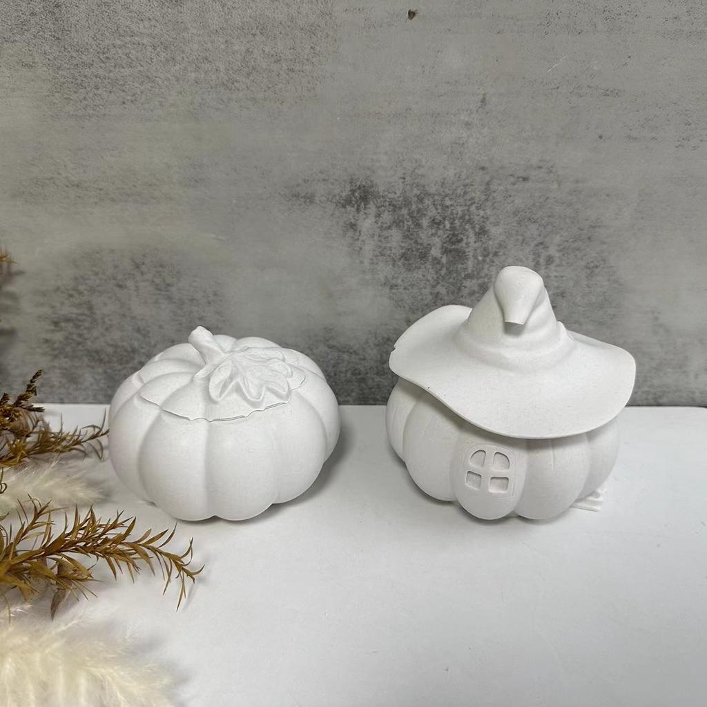 Баночка с тыквой и крышкой, силиконовая форма, коробка для хранения ювелирных изделий на Хэллоуин, гипсовая форма, сделай сам, пластырь ручной работы, эпоксидная смола, поделки, цветочный горшок