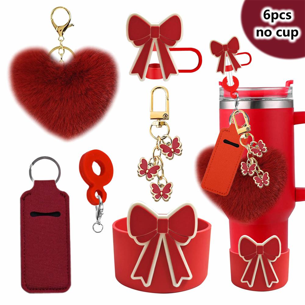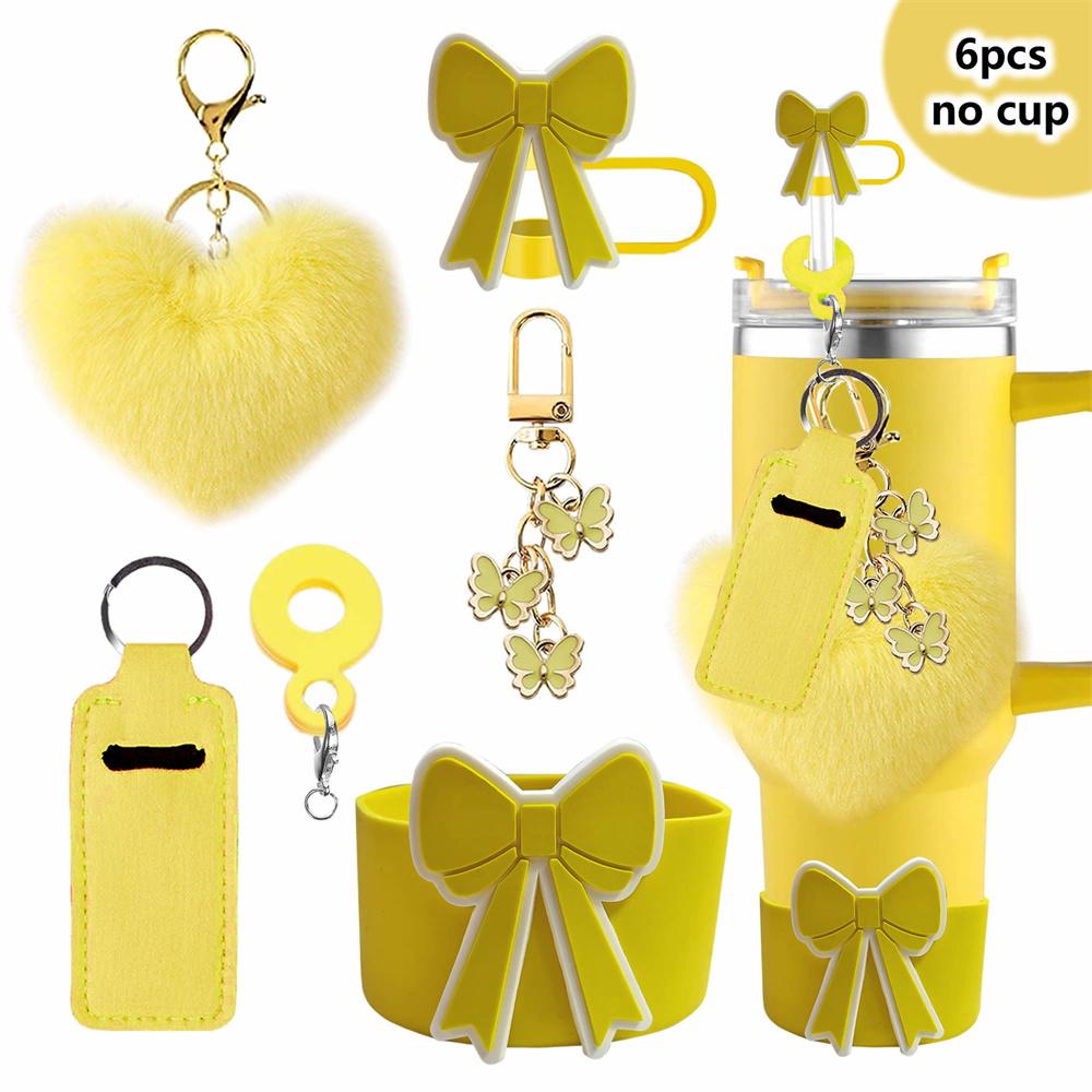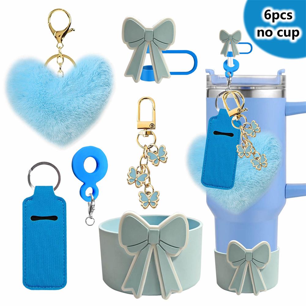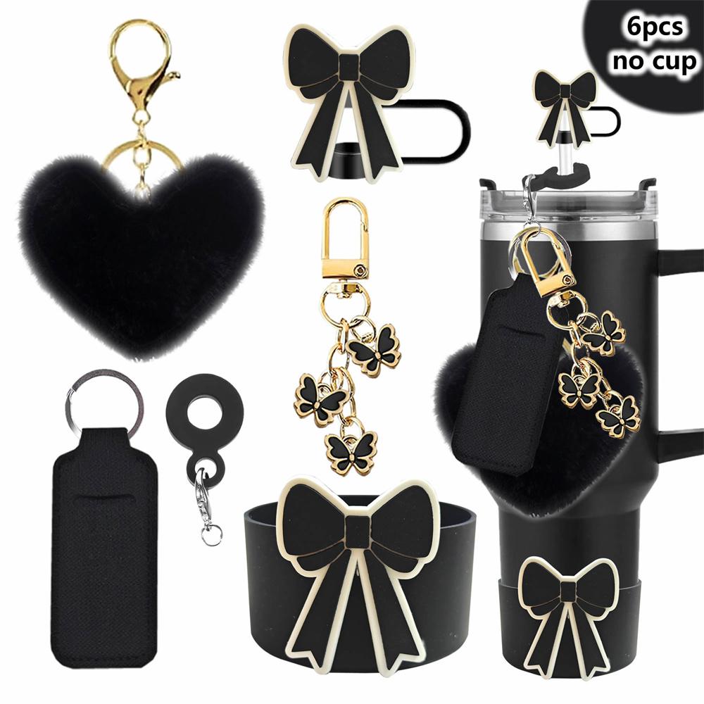 6 шт. силиконовые сапоги для бутылок с водой, крышка с бантом, соломенная крышка, пробка, не проливающаяся, бабочка, подвеска, цепочка, помада, сумка, аксессуары для чашек