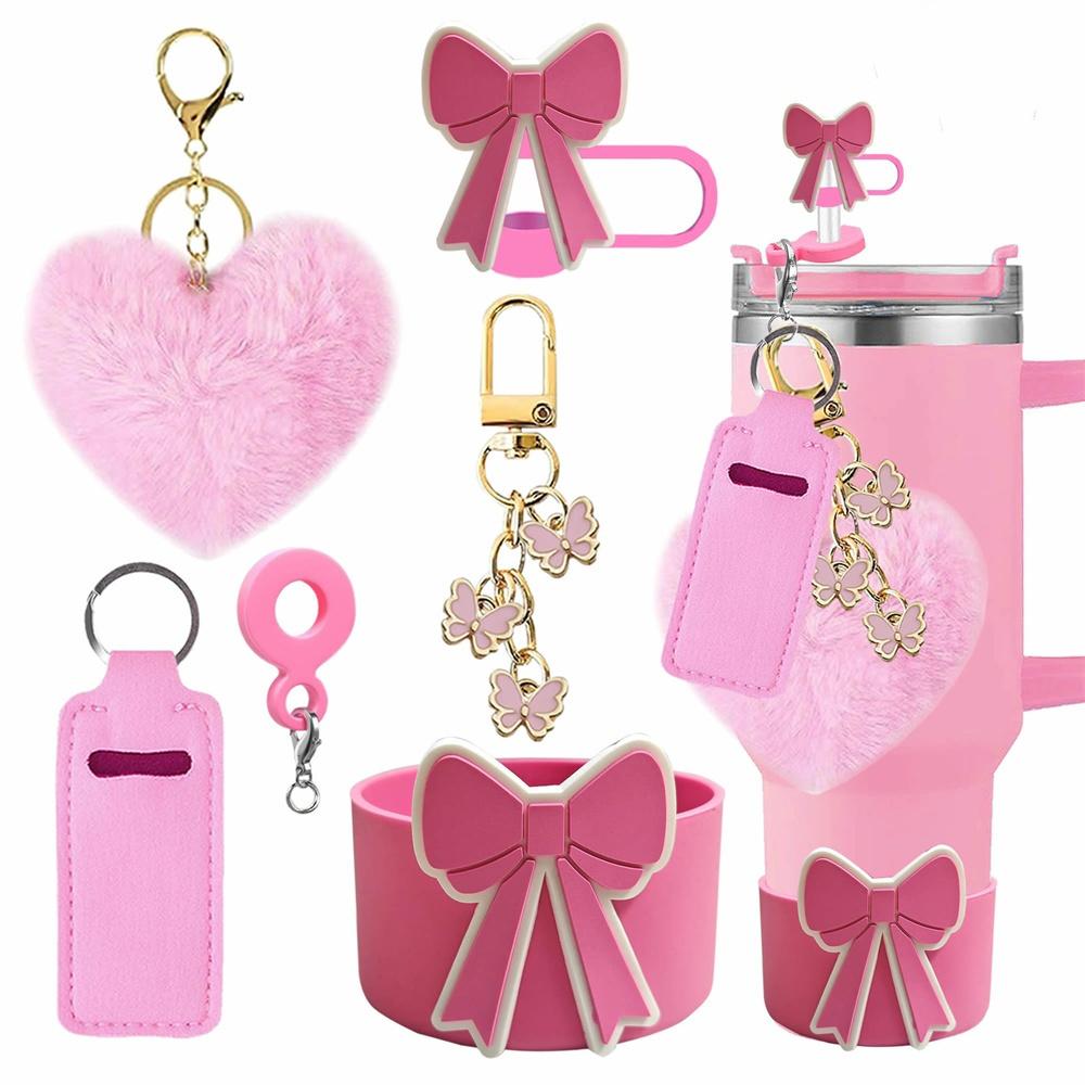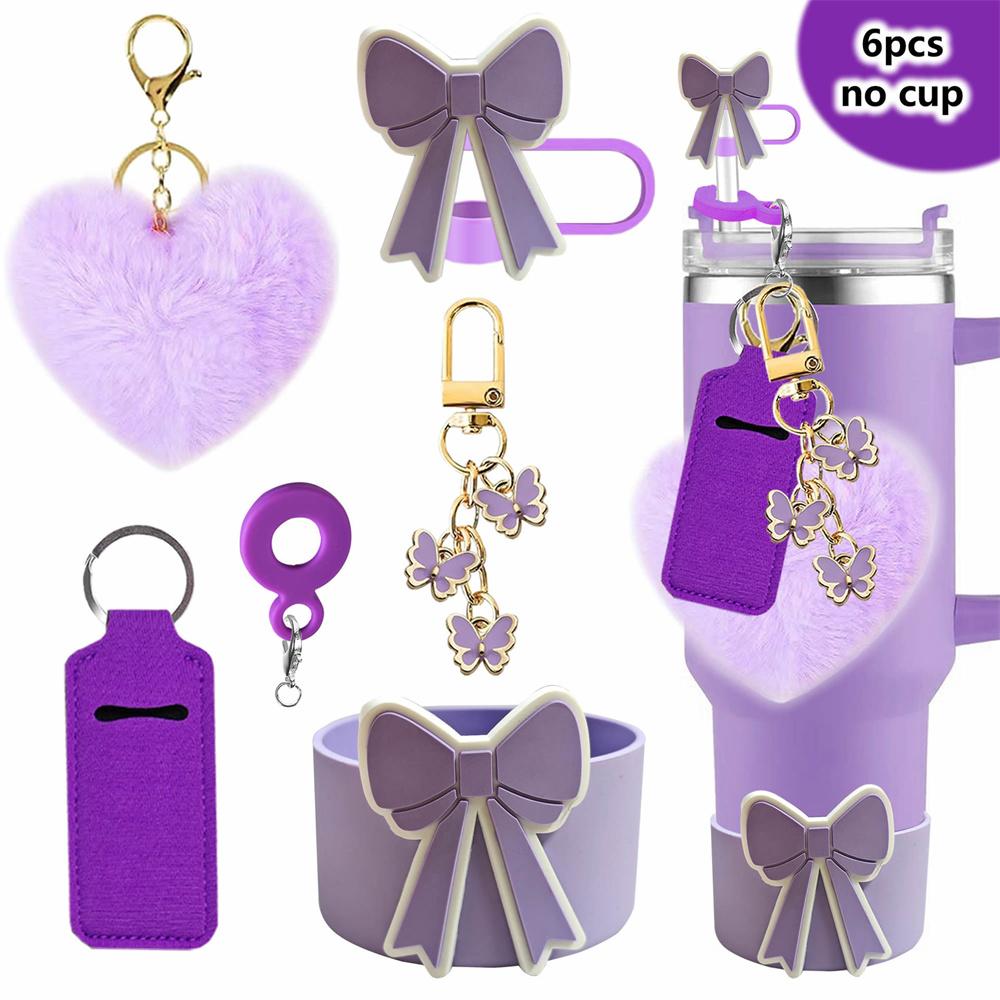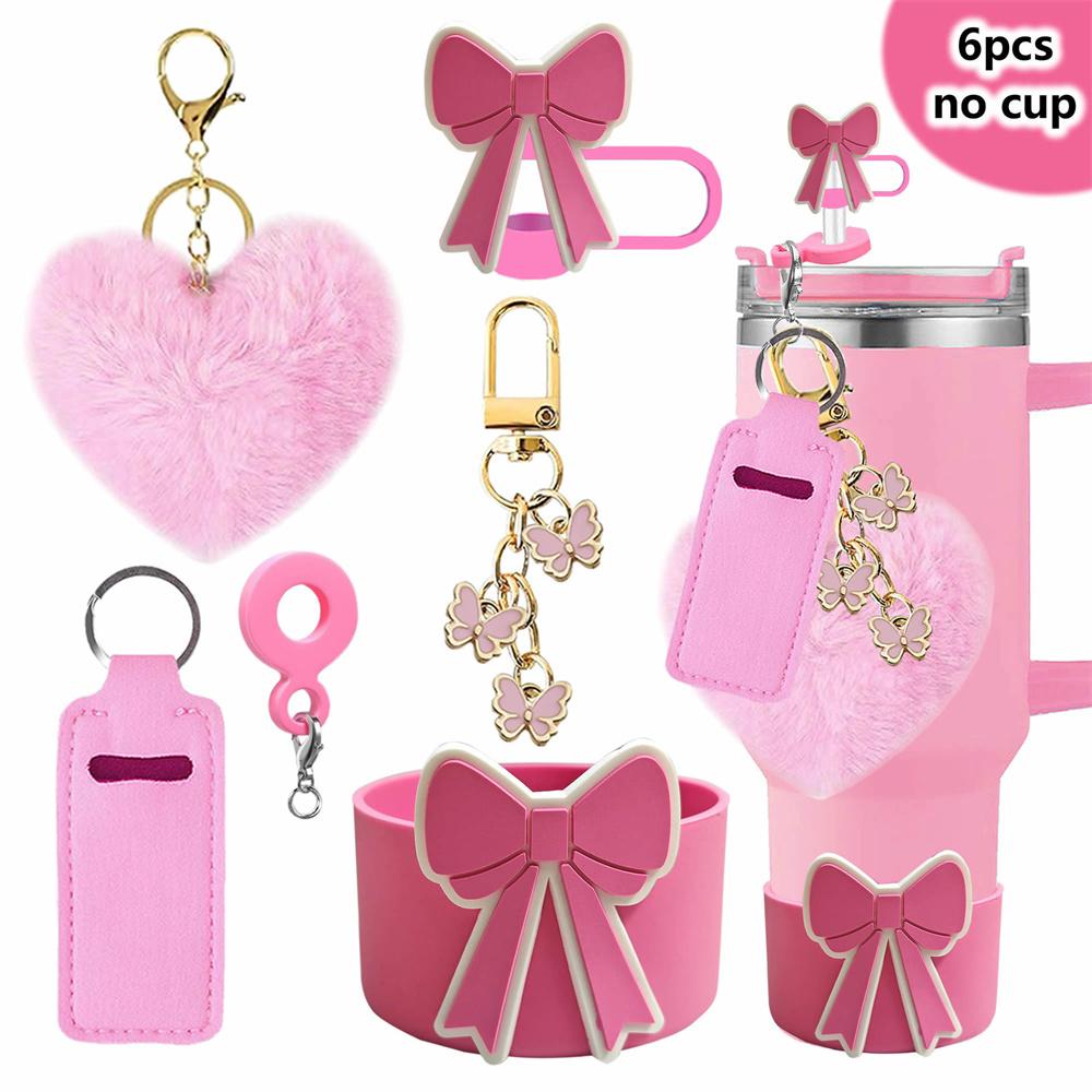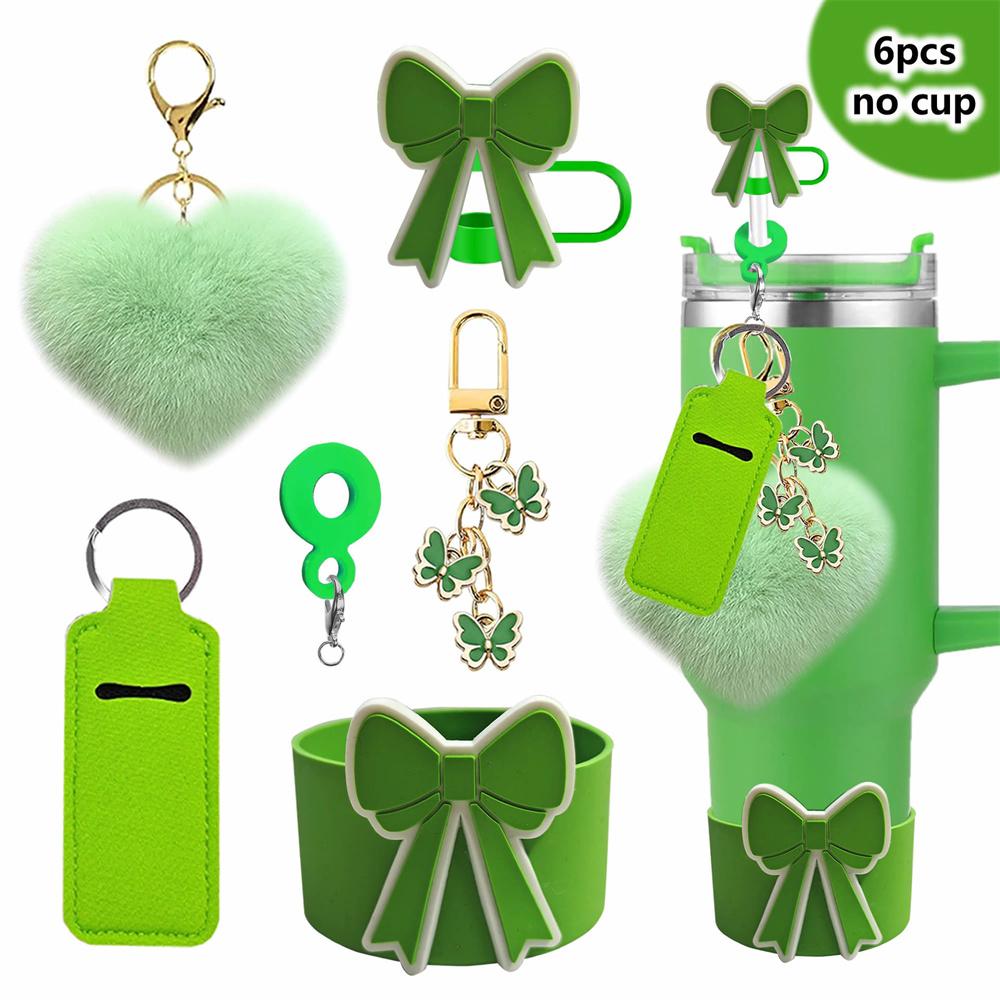 6 шт. силиконовые сапоги для бутылок с водой, крышка с бантом, соломенная крышка, пробка, не проливающаяся, бабочка, подвеска, цепочка, помада, сумка, аксессуары для чашек