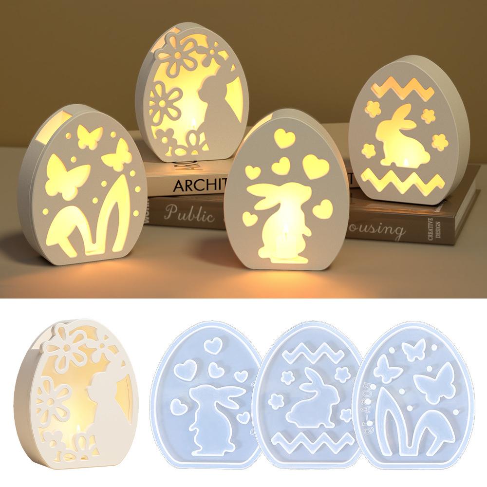 Полый пасхальный кролик, лампа, силуэт, силиконовая форма, сделай сам, гипсовая подставка для свечи, подключаемое декоративное украшение, форма для смолы, поделки