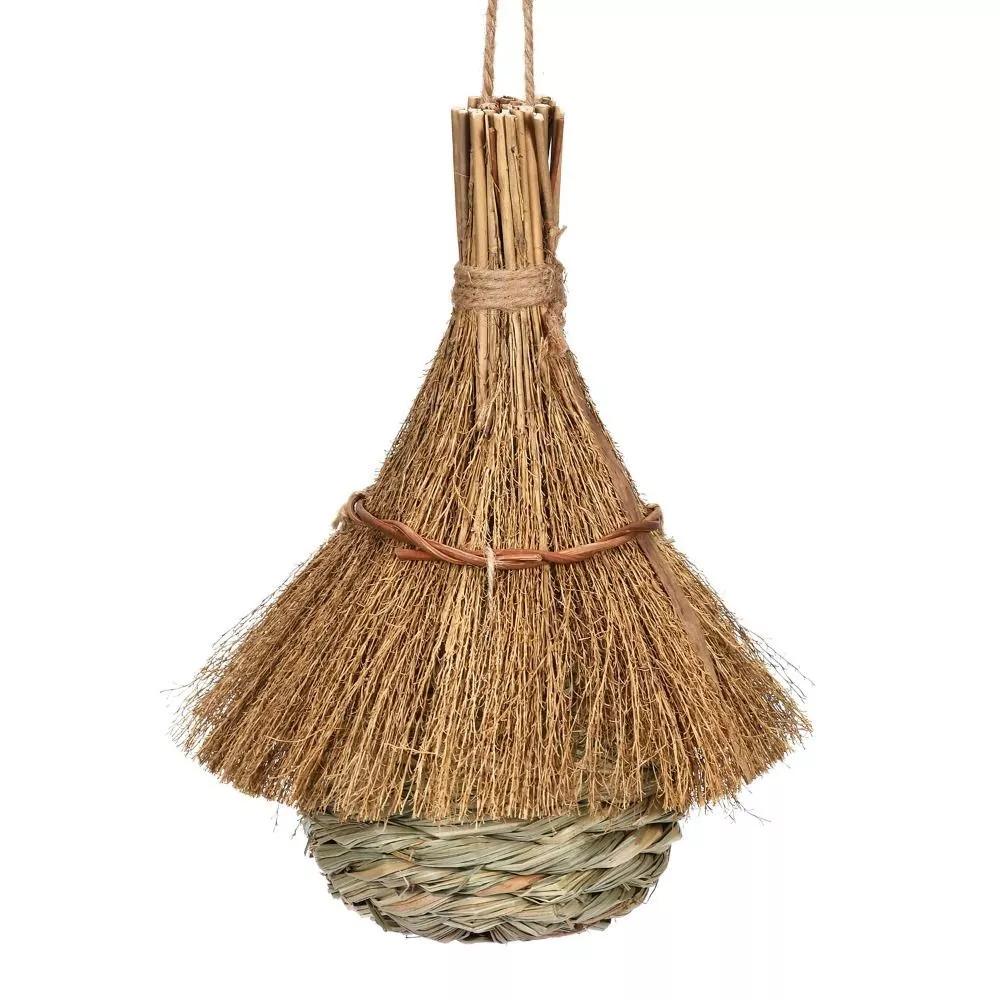 Подвесное Гнездо для Птиц из Натуральной Травы Клетка Гнездо для Птиц Дом из Травы Подвесной Дом для Колибри Ручной Работы Домик для Птиц Сад
