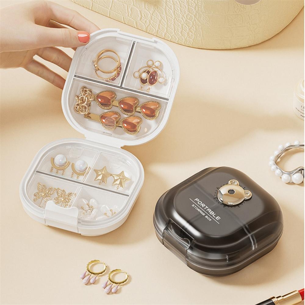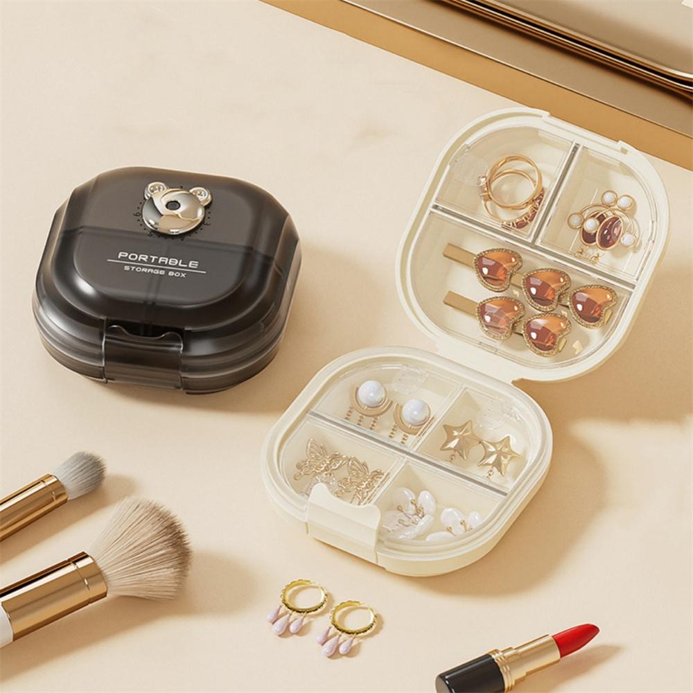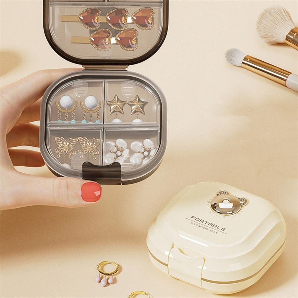 7 ячеек Портативная коробка для хранения Шпильки Серьги Ожерелья Шкатулки для украшений Мини-медведь с рисунком Футляр для лекарств и таблеток Дорожный разделитель Коробка