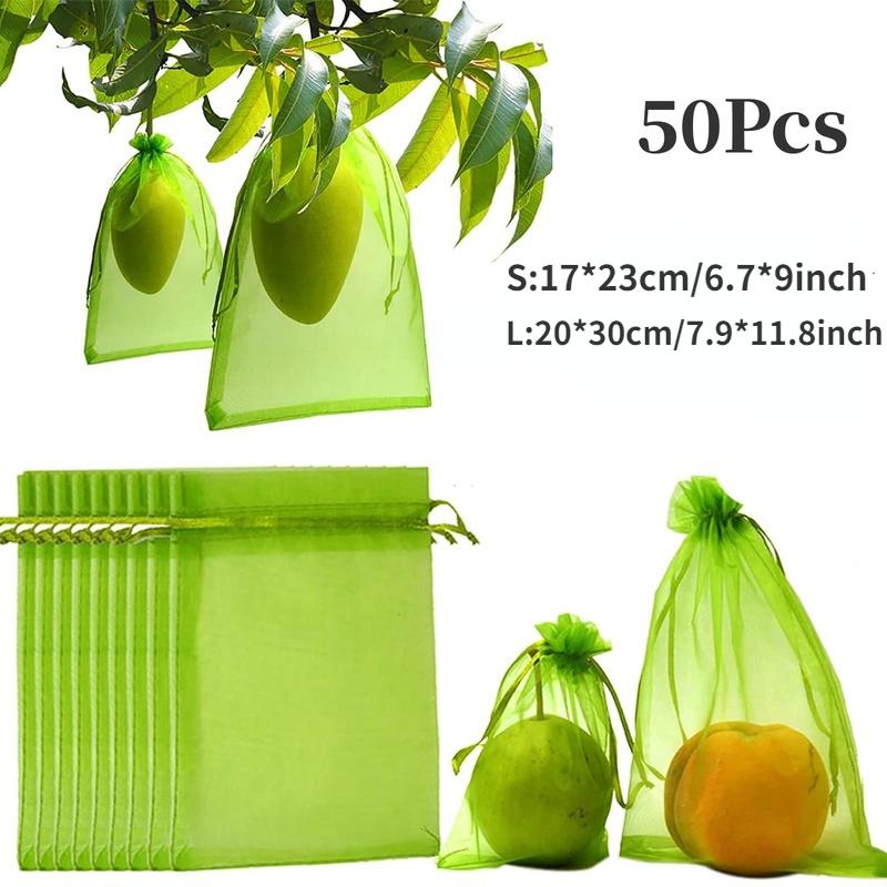 50 шт., упаковка из органзы с завязками для сада, защита от птиц, сетка для защиты фруктов, подарочная упаковочная сумка