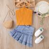 Летний костюм для девочек, однотонный джинсовый костюм с лямками и короткой юбкой