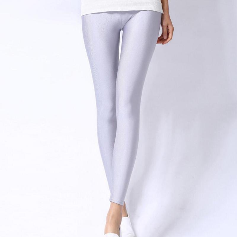 Женские однотонные брюки ярких цветов, леггинсы, блестящие эластичные повседневные брюки, флуоресцентные брюки из спандекса длиной до щиколотки