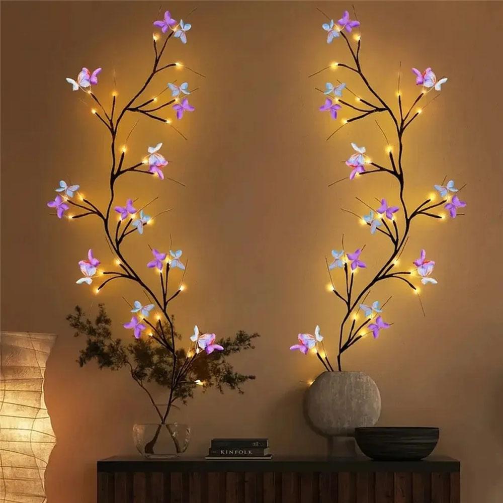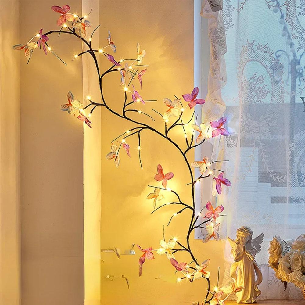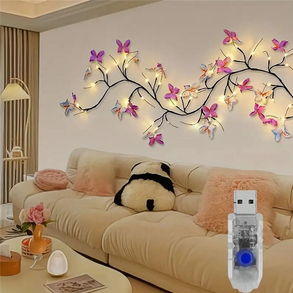 36-светодиодная гирлянда из лозы ивы 1,6 м 8 режимов USB-фонарик в виде бабочки для украшения комнаты, настенные светильники для внутреннего и наружного использования