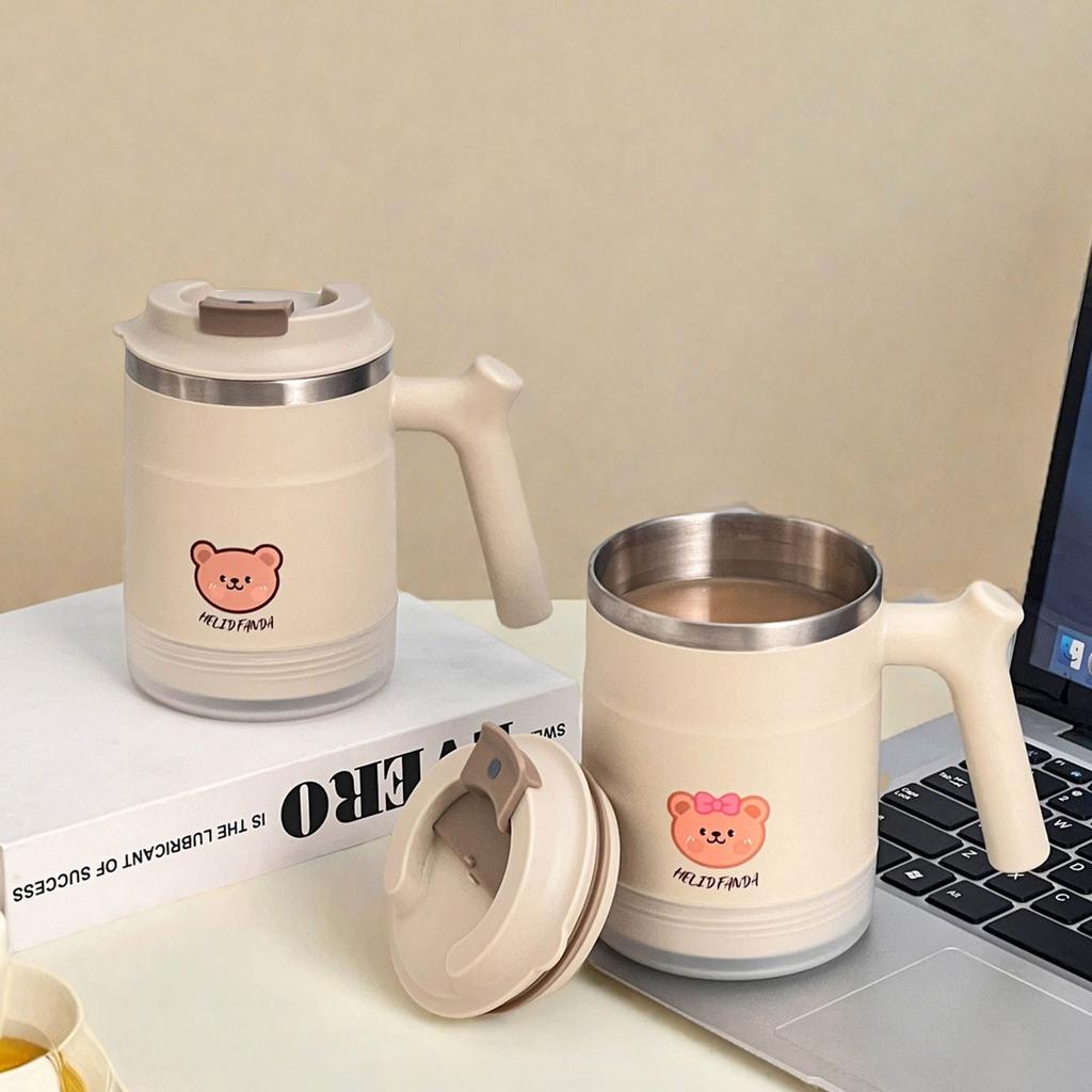 Милая портативная двухслойная термокружка для кофе со складной ложкой, чашка для воды из нержавеющей стали 304, герметичная посуда для напитков