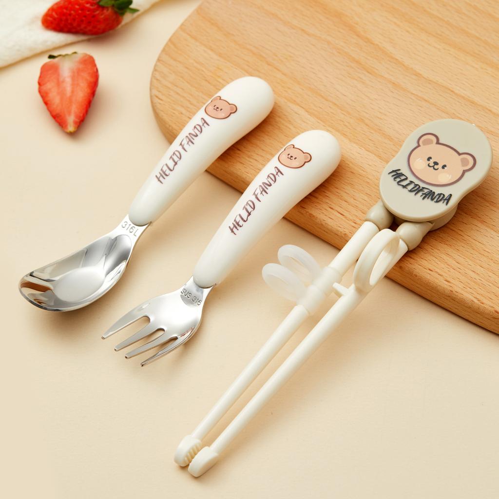 Портативный детский набор столовых приборов из нержавеющей стали 316, симпатичные столовые приборы для кормления, ложка, вилка, обучающие палочки для еды, детские столовые приборы